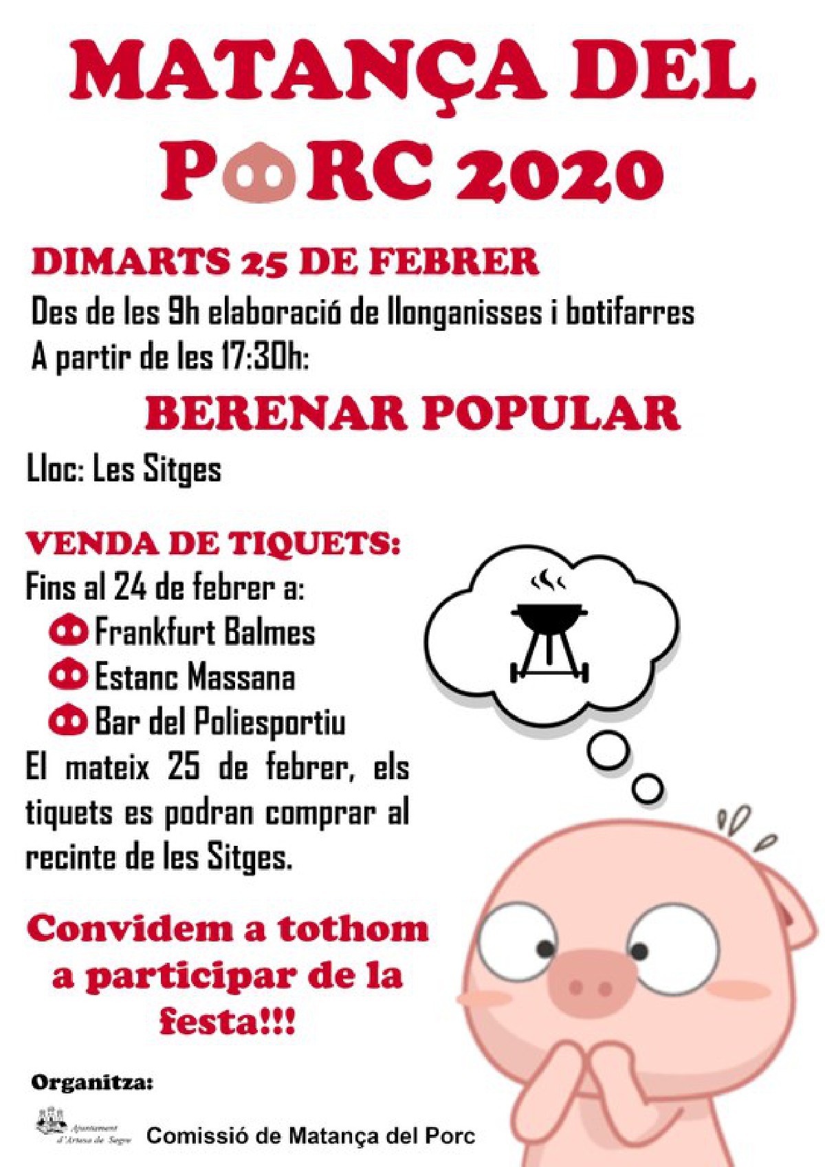 Artesa de Segre ultima els detalls per una nova edició de la Matança del Porc, que es celebrarà el dimarts 25 amb la tradicional elaboració de llonganisses i botifarres i el berenar popular de brasa.