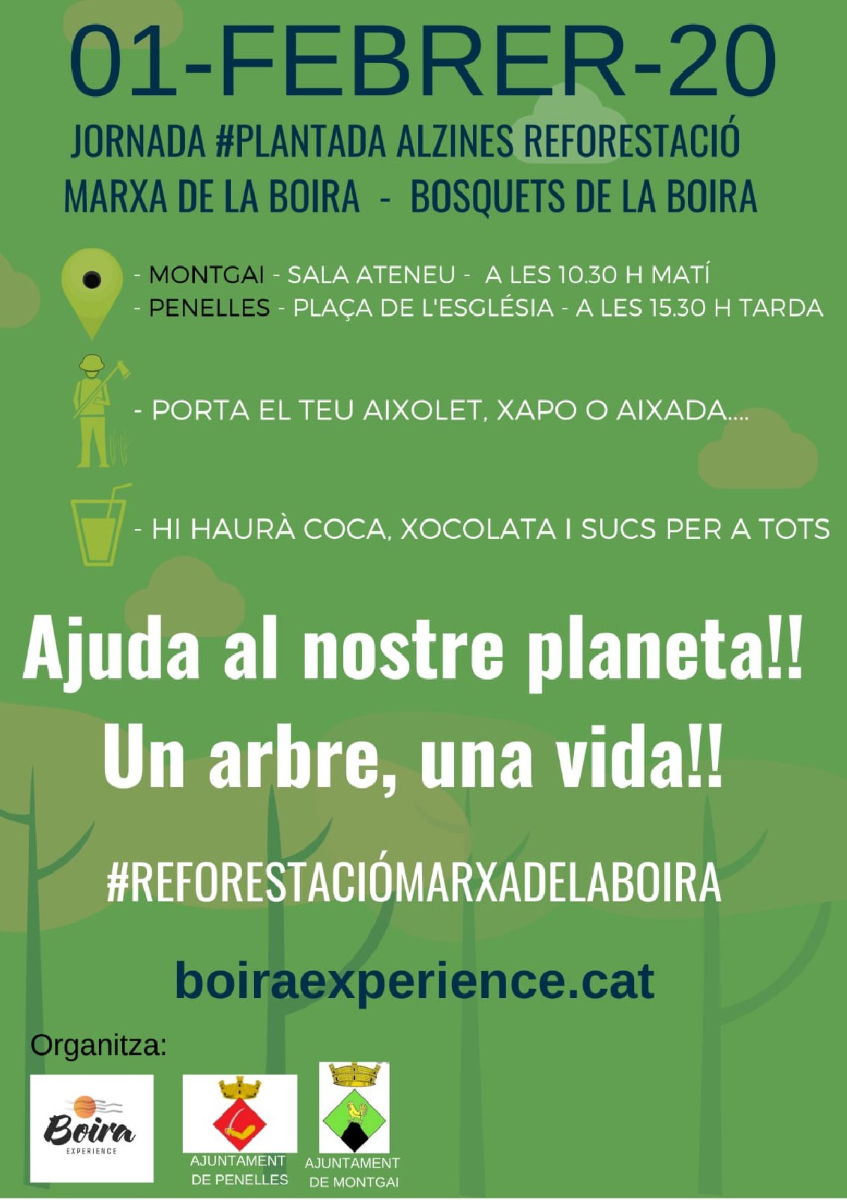 Boiraexperience organitza aquest dissabte una jornada de plantada d'arbres. Els organitzadors de la Marxa de la Boira volen reforestar amb alzines l'entorn de Montgai al matí i de Penelles a la tarda. És una activitat oberta a tothom.