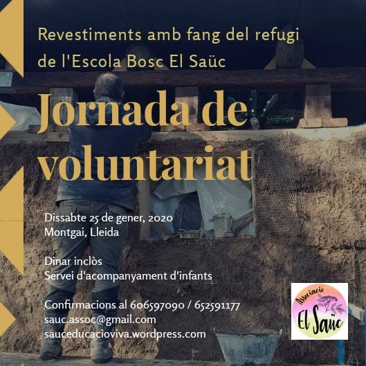 L'Escola Bosc El Saüc organitza aquest dissabte 25 de gener, noves jornades de voluntariat per la bioconstrucció del refugi de l'escola.