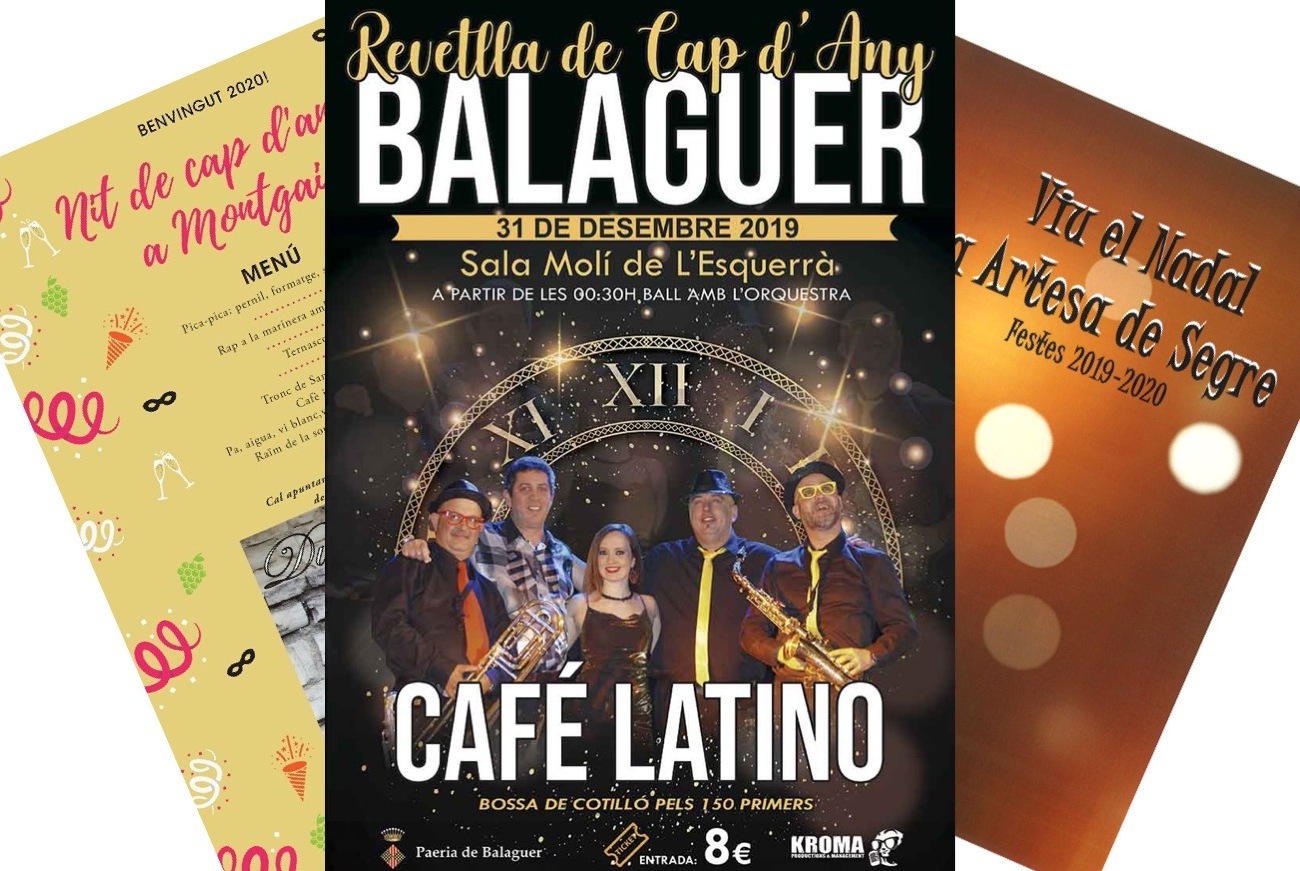 Balaguer i comarca organitzen un any més la Revetlla de Cap d'Any. A Balaguer es farà al pavelló Molí de l'Esquerra`de les 00.30h a les 5.00h i estarà amenitzada amb música en directe per l'Orquestra Café Latino.