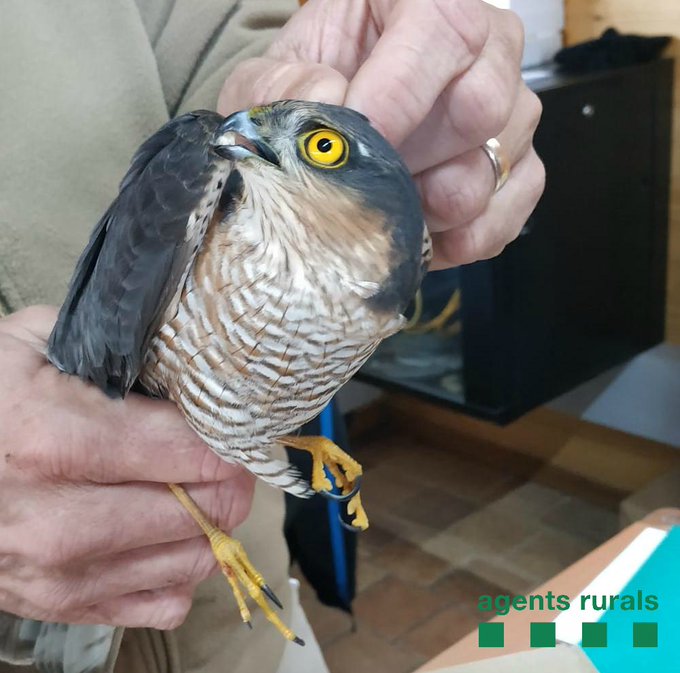 Els Agents Rurals recullen un esparver ferit a Alòs de Balaguer. també van denunciar el titular d'un turisme per conduir camp a través a la Serra del Montsec a Àger i van recollir un gos abandonat a la Castelló de Farfanya