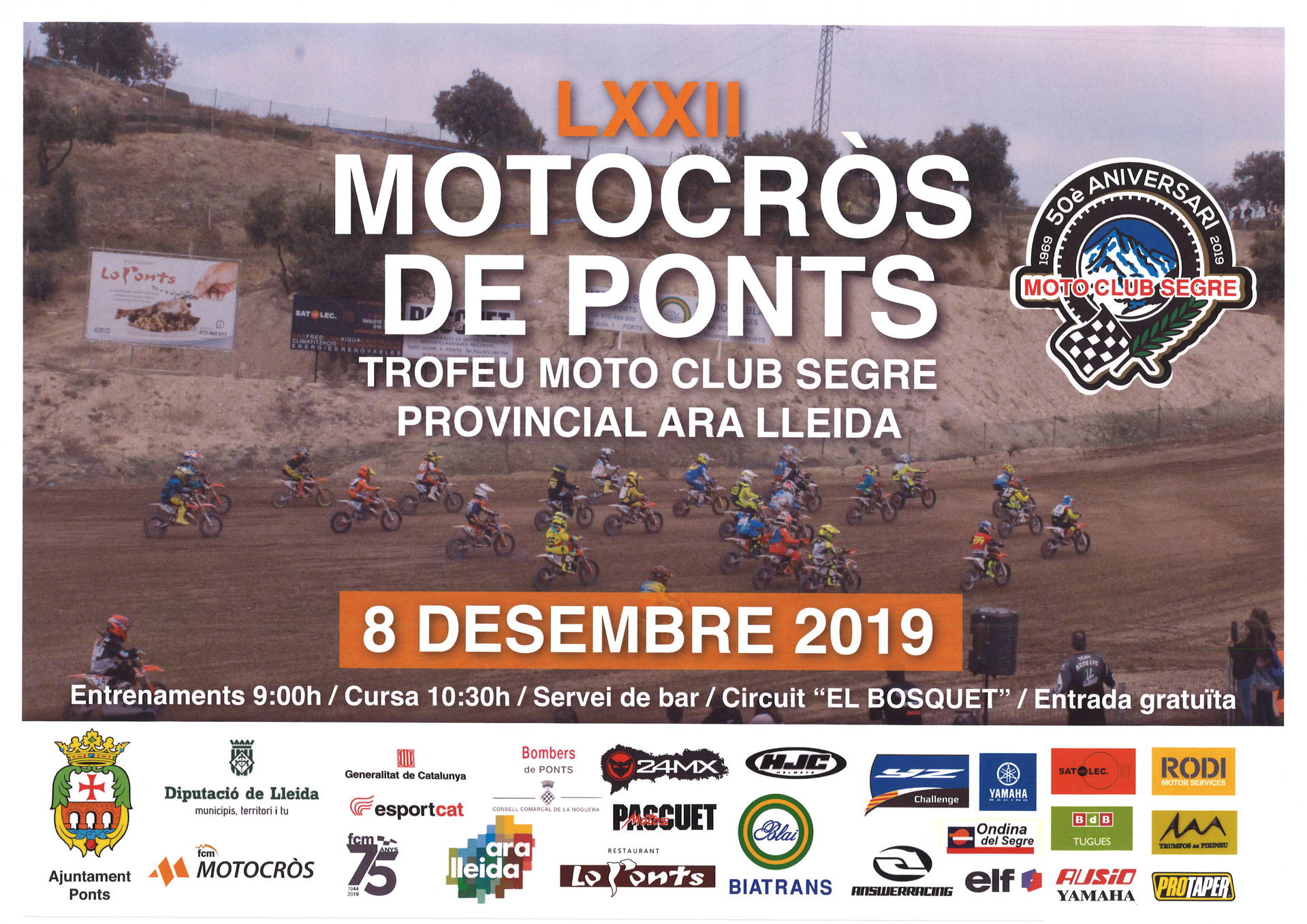 Aquest diumenge 8 de desembre torna l'olor a benzina al circuit de motocròs de Ponts. Ho farà amb el LXXII (72) Motocròs de Ponts, Trofeu Moto Club Segre i Provincial Ara Lleida.