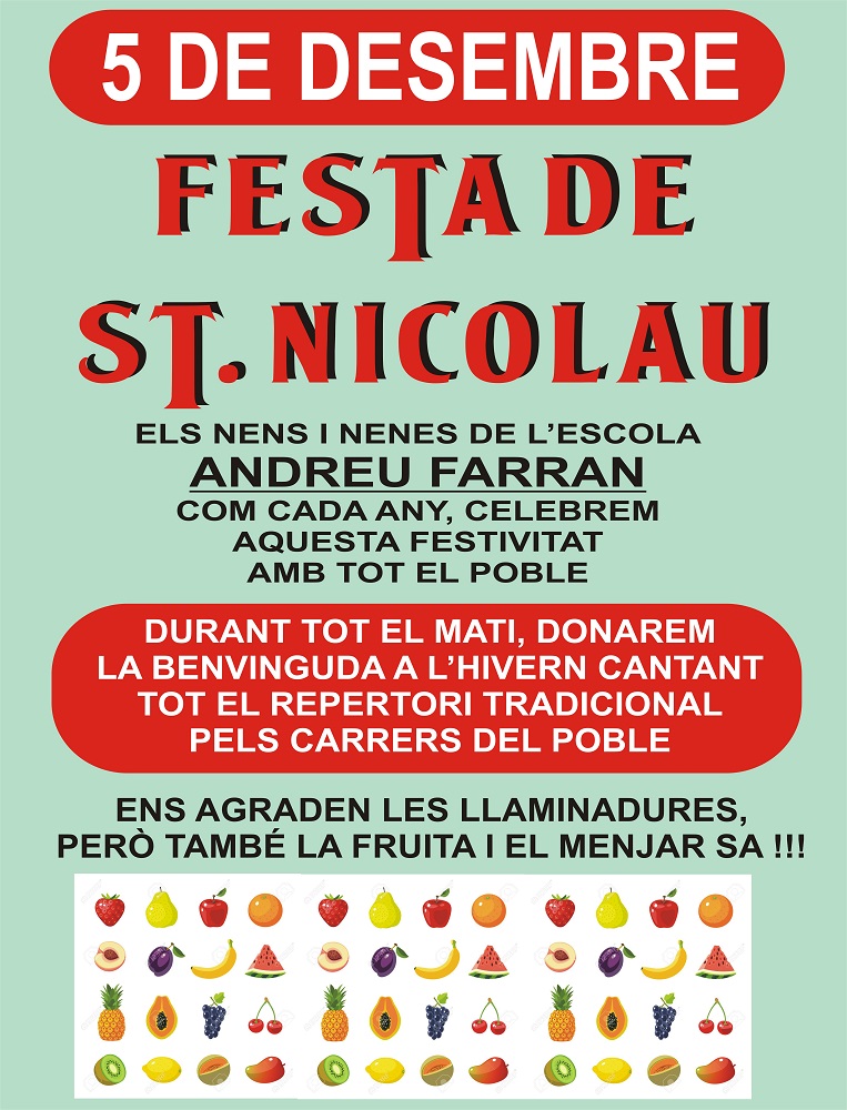 Aquest dijous, festivitat de ant Nicolau, alguns municipis com Àger o Tartareu celebraran la tradició de la cantada de nadales pels carrers, a càrrec dels infants de l'escola.