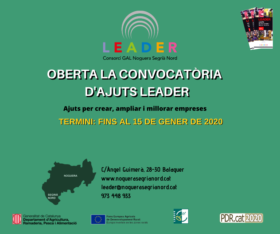 Oberta la convocatòria 2019 dels ajuts Leader per a la creació, ampliació i millora d'empreses de la Noguera i el Segrià Nord