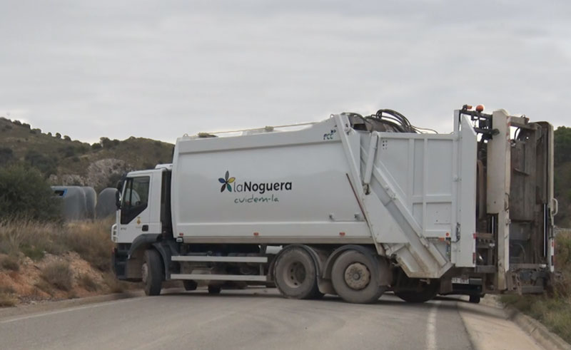 Els treballadors encarregats del servei de la recollida de la brossa a la comarca de la Noguera no compleixen els serveis mínims i bloquegen l'entrada a l'abocador com a mesura de pressió per arribar a un acord amb l'empresa, FCC