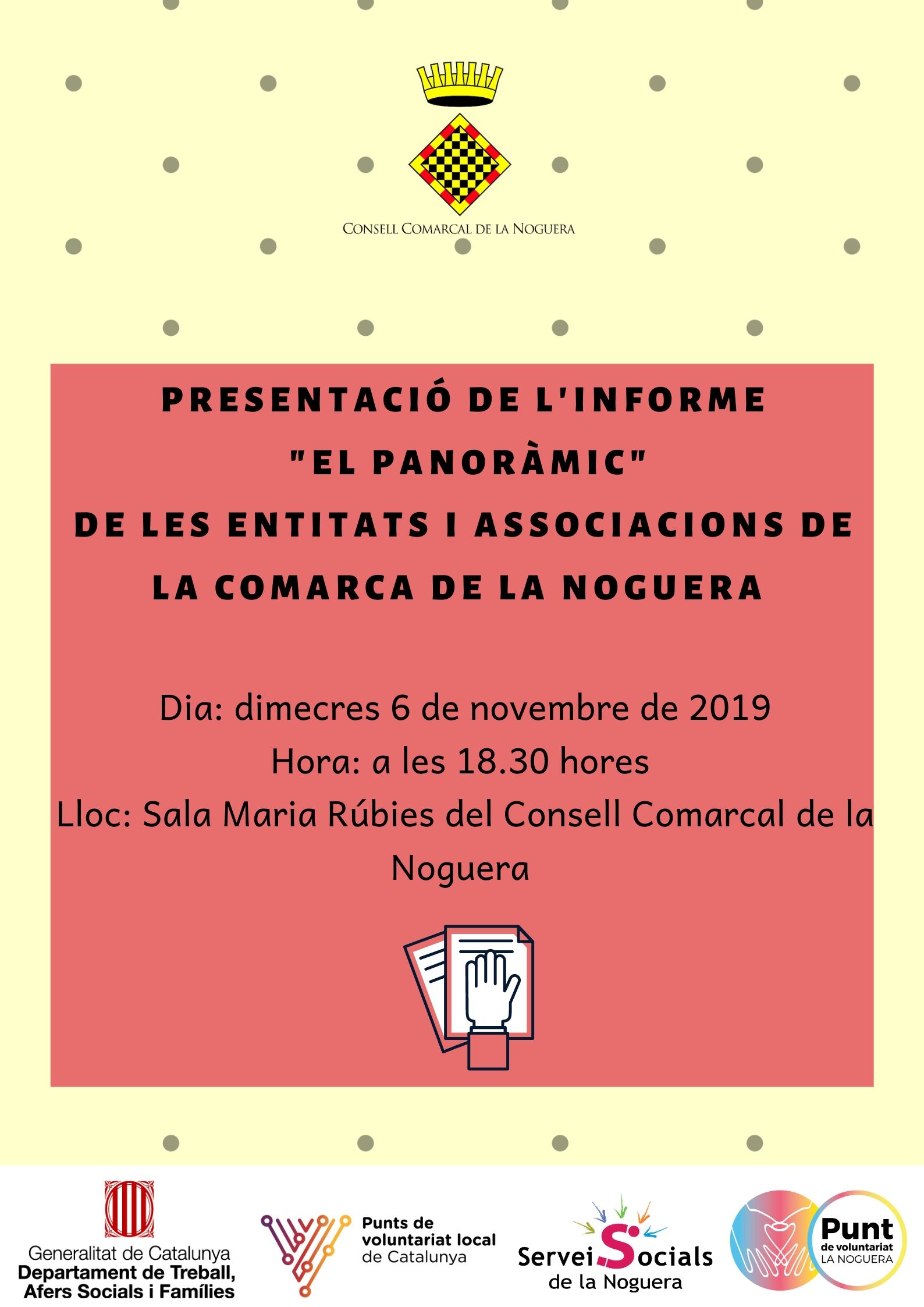 El Punt de Voluntariat dels Serveis Socials de la Noguera presenta aquesta tarda l'informe del Panoràmic de les entitats de la comarca