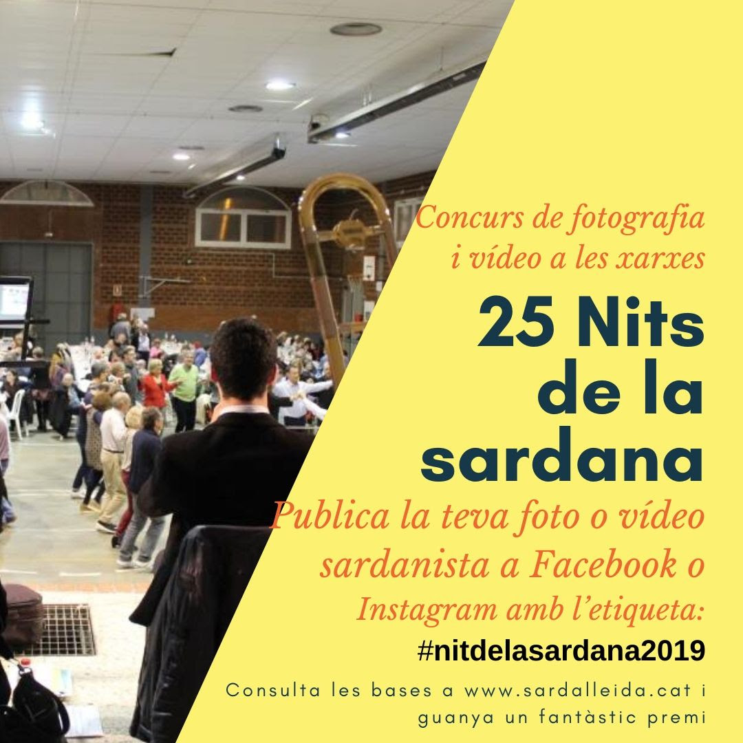 La Federació Sardanista de les Comarques de Lleida organitza el concurs de fotografia '25 Nits de la Sardana'. El vídeo o imatge es podrà publicar els dies previs o el mateix dia de la Nit de la Sardana, el 16 de novembre.