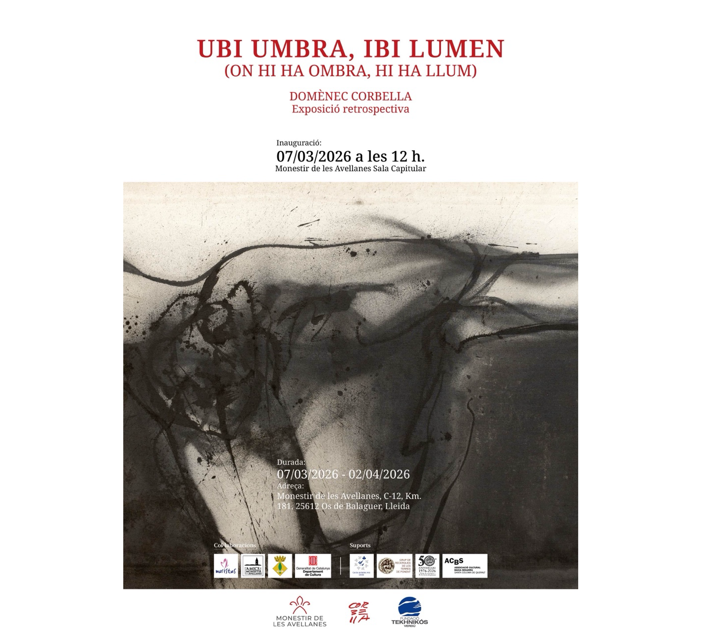 UBI UMBRA, IBI LUMEN (On hi ha ombra, hi ha llum). Exposició retrospectiva de Domènec Corbella a la Sala Capitular del Monestir de les Avellanes