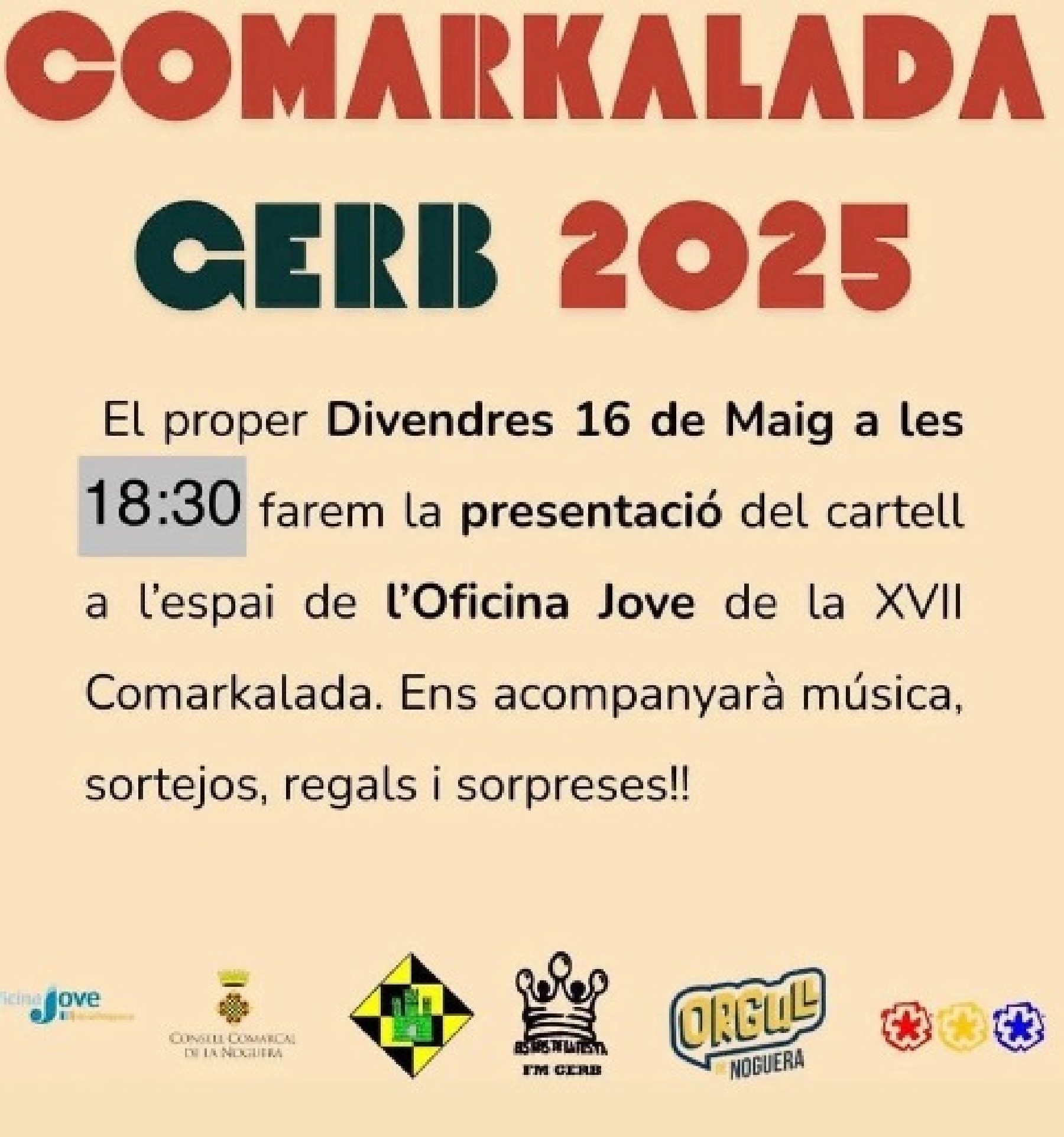 Aquest divendres es farà a 2/4 de 7 de la tarda a l'Oficina Jove de la Noguera la presentació de la XVII COMARKALADA que enguany tindrà lloc el dia 14 de juny a GERB
