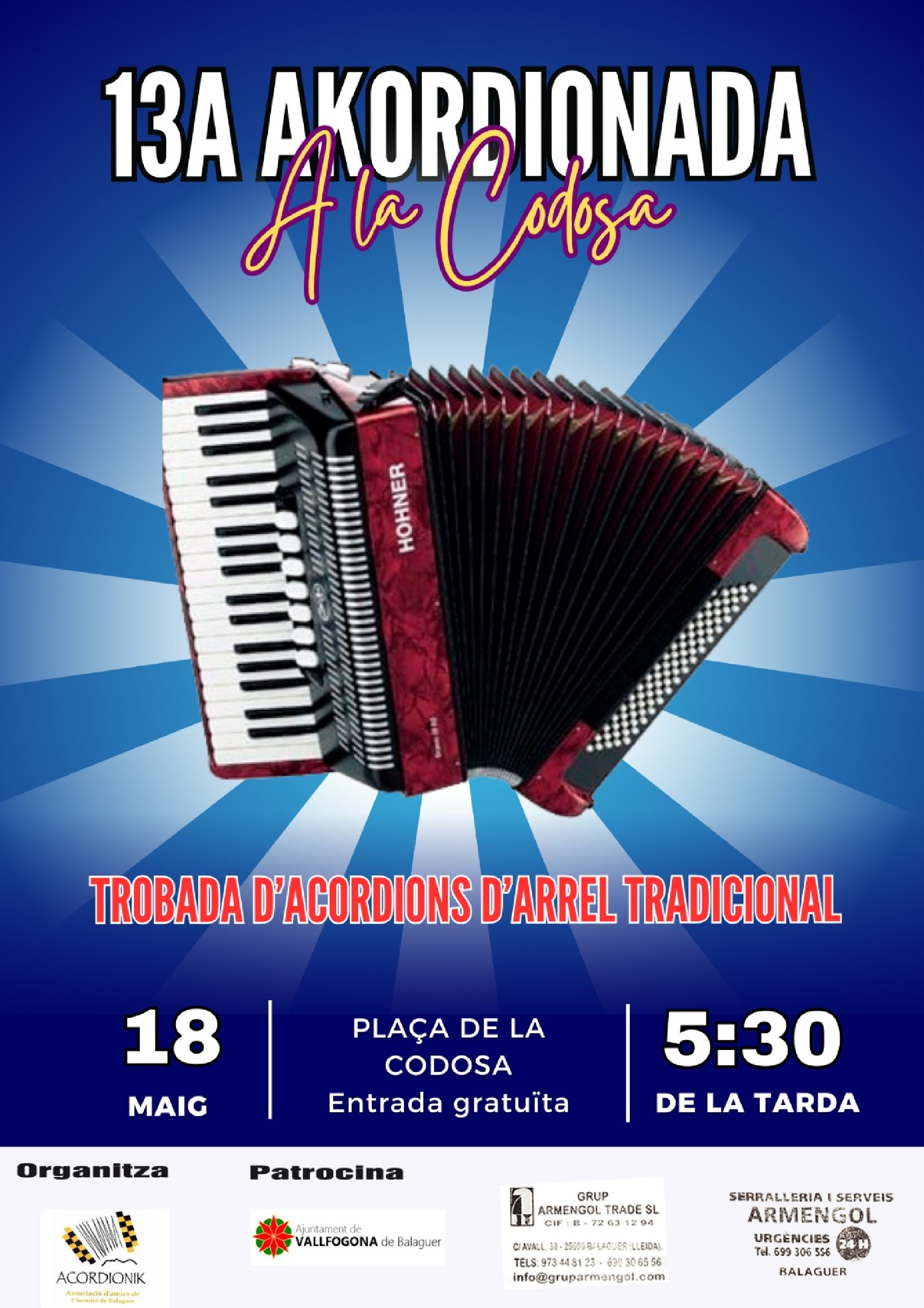 El proper diumenge 18 de maig tindrà lloc la 13a Akordionada a la Codosa