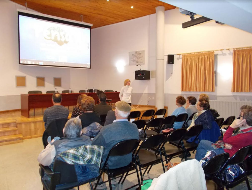 La neuropsicòloga, Olga Gelonch, explica als veïns de Vilanova de Meià com mantenir la ment activa i adoptar actituds i comportaments que afavoreixin hàbits saludables.