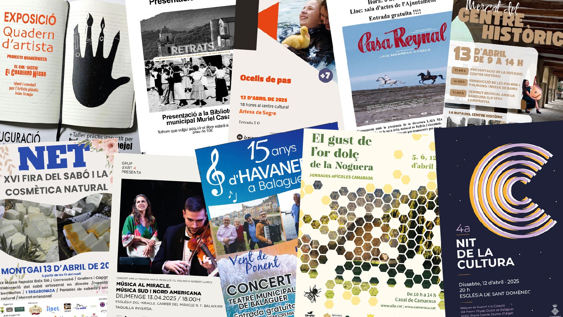 Balaguer celebra el 15è aniversari de Vent de Ponent, la Nit de la Cultura, teatre a la Mercantil i concert al Miracle, mentre a comarca hi ha mel a Camarasa, Fira del Sabó a Montgai i més propostes festives
