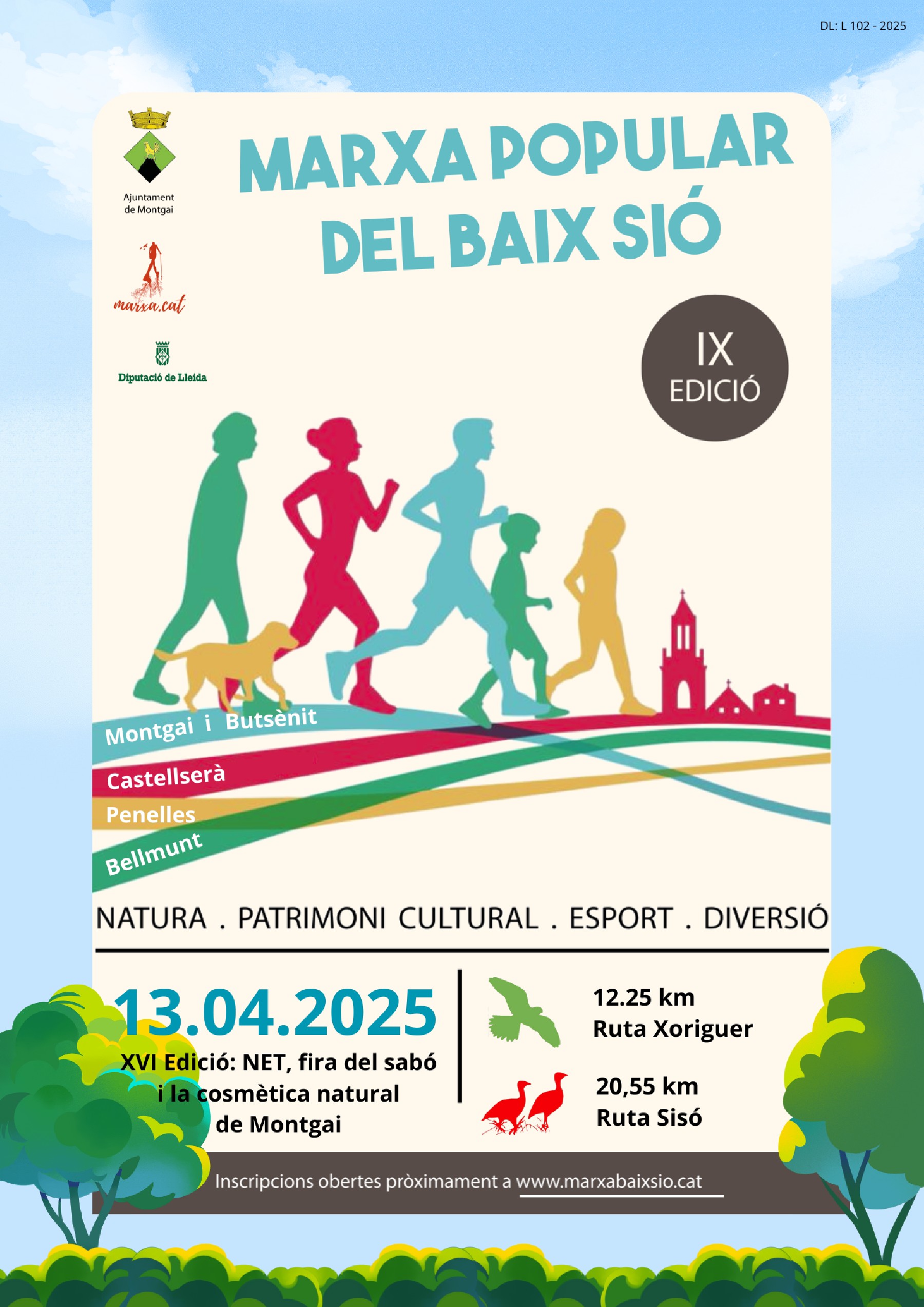 Montgai organitza un any més la Marxa Popular del Baix Sió, una forma de descobrir el territori sense presses que tindrà lloc el proper 13 d'abril, coincidint amb la Fira del Sabó