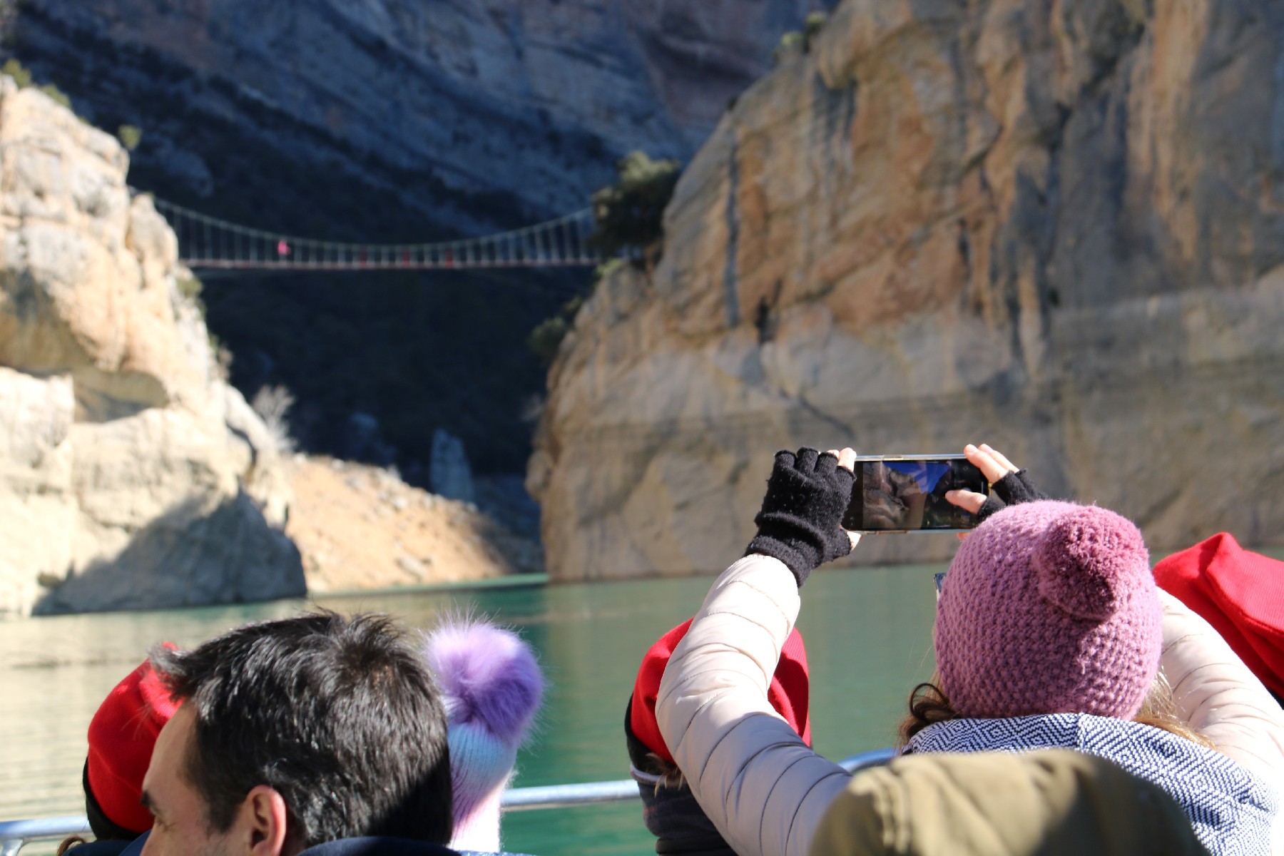 Primer cap de setmana d'activitats aquàtiques al congost de Mont-rebei després de tres anys per la falta d'aigua. Empreses de turisme actiu fan viatges en vaixell elèctric i donen el tret de sortida a les primeres rutes en caiac