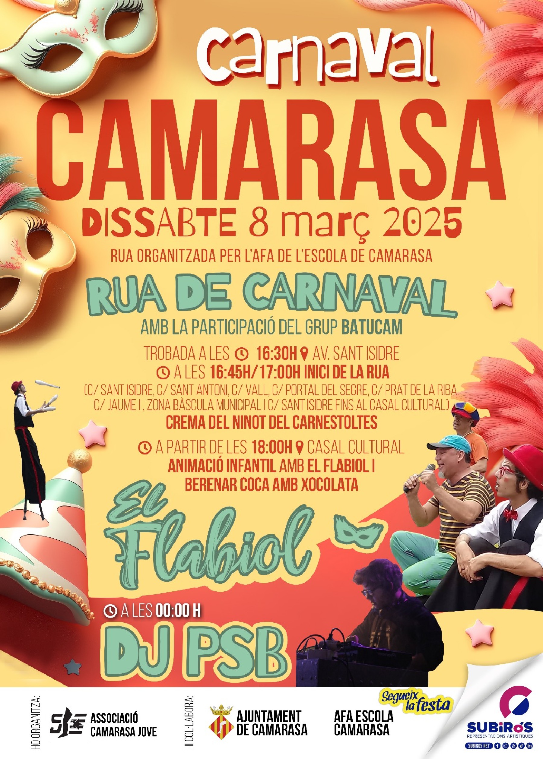 Camarasa es prepara per viure una jornada plena de color i festa amb la celebració del Carnaval 2025, que tindrà lloc aquest dissabte amb una rua de tarda i festa de nit