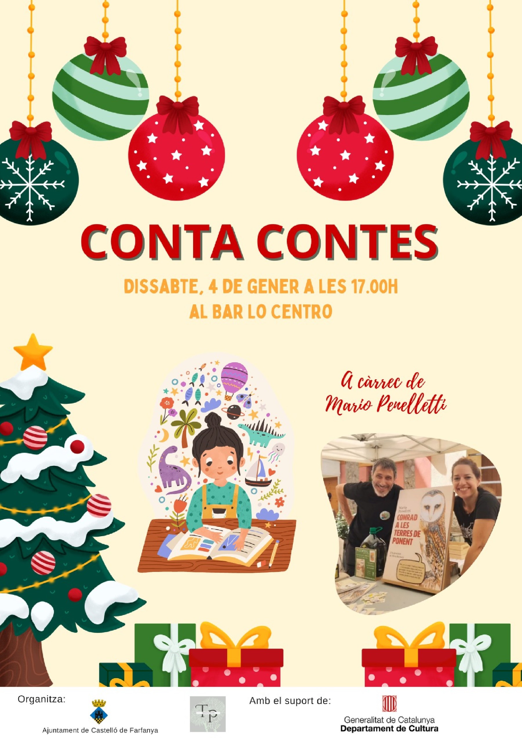 Castelló de Farfanya proposa dues activitats culturals abans de l'arribada dels Reis. Mario Penelletti portarà els seus contes per a infants aquest dissabte a Lo Centro i Núria Conangla protagonitzarà el Concert de Reis diumenge a Sant Miquel