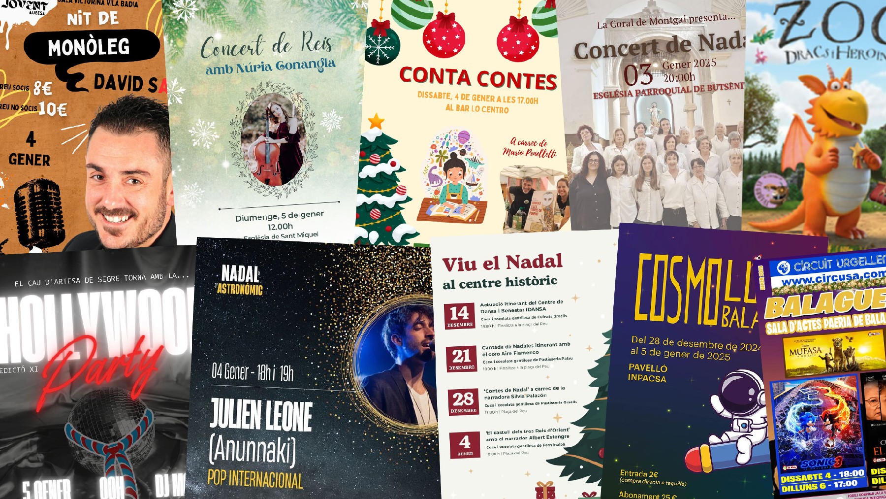 Cap de setmana amb les cavalcades de Reis com a principal activitat a Balaguer i comarca. Encara es pot gaudir de propostes com els Cosmolúdic, un parell de conta contes i algun concert de Nadal