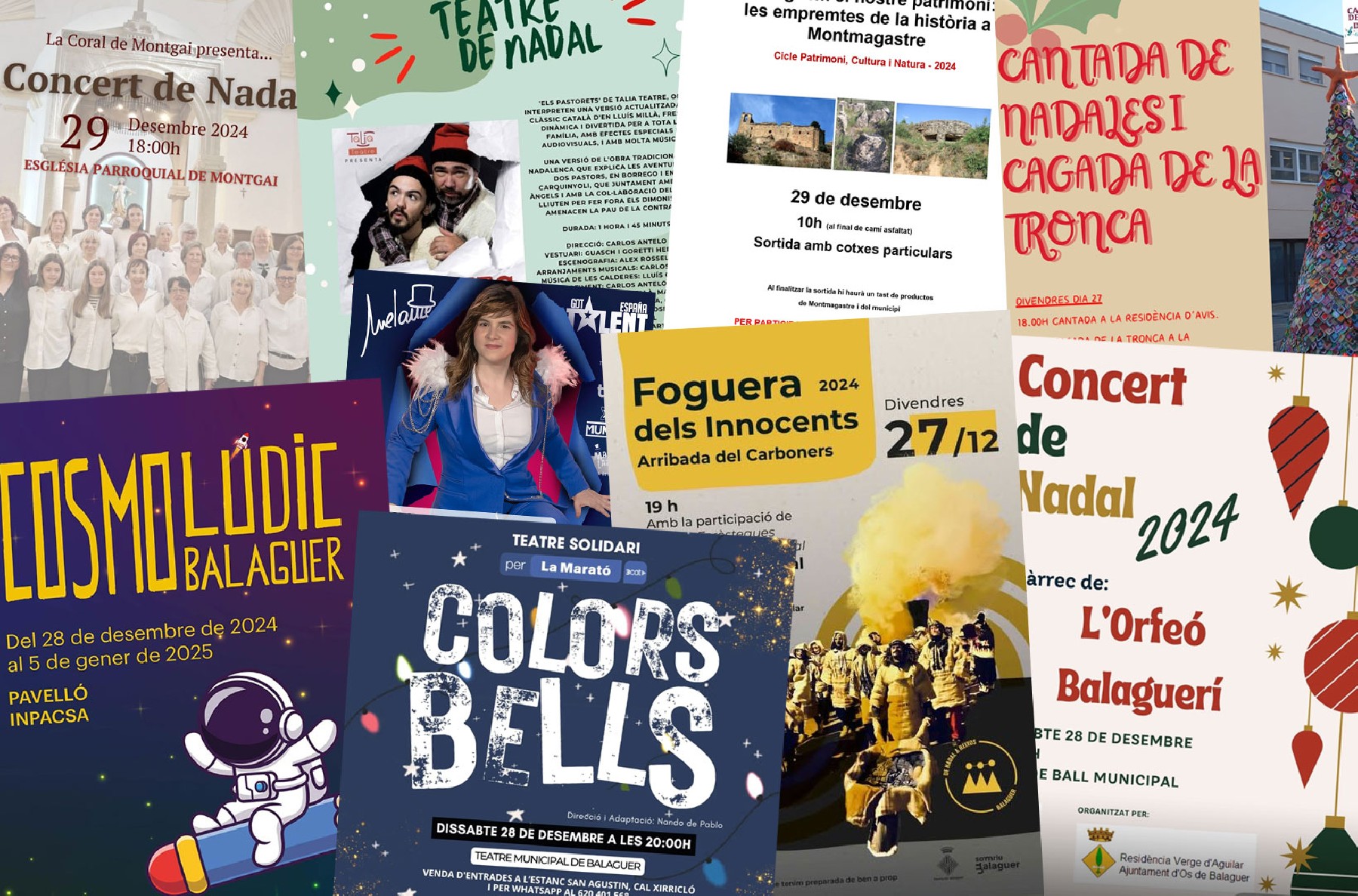 A Balaguer destaquen quest cap de setmana el Caga Soca de Nadal, el festival Films en Off i els Pastorets de l'Escola Pia. A comarca hi ha propostes com els mercats de Nadal de Cubells el dissabte i Castelló el diumenge