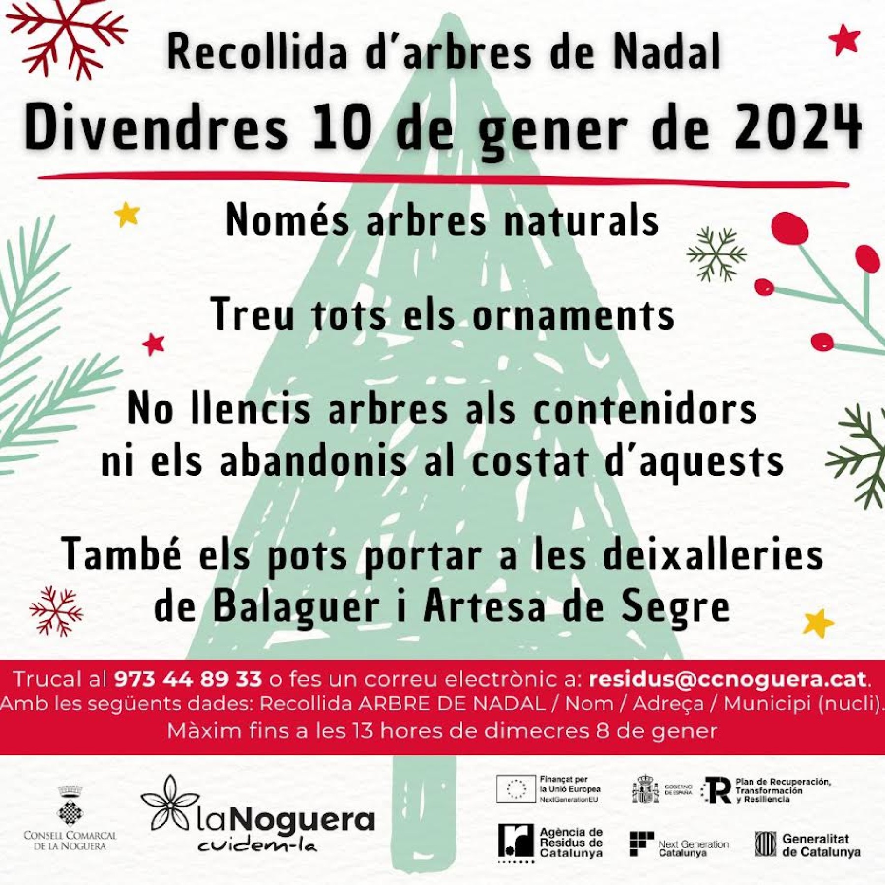 Servei de recollida selectiva dels arbres de Nadal passat festes. El divendres 10 de gener es recolliran porta a porta prèvia sol·licitud