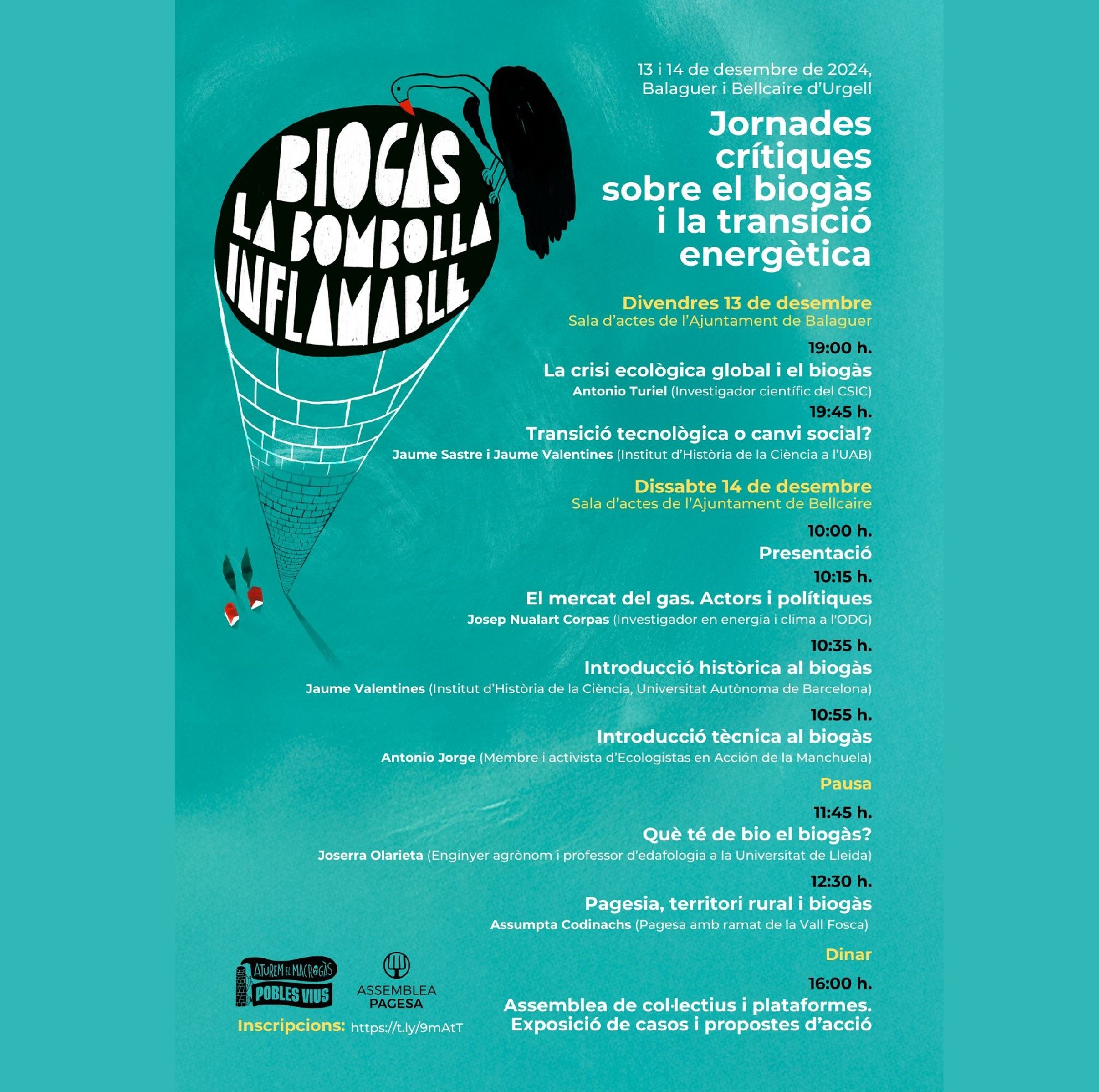 Els dies 13 i 14 de desembre es faran les Primeres Jornades Crítiques sobre el Biogàs i la Transició energètica organitzades per la Plataforma Pobles Vius i l'Assemblea Pagesa. Antonio Turiel, inaugurarà les jornades el divendres dia 13 a les 19h a la sal