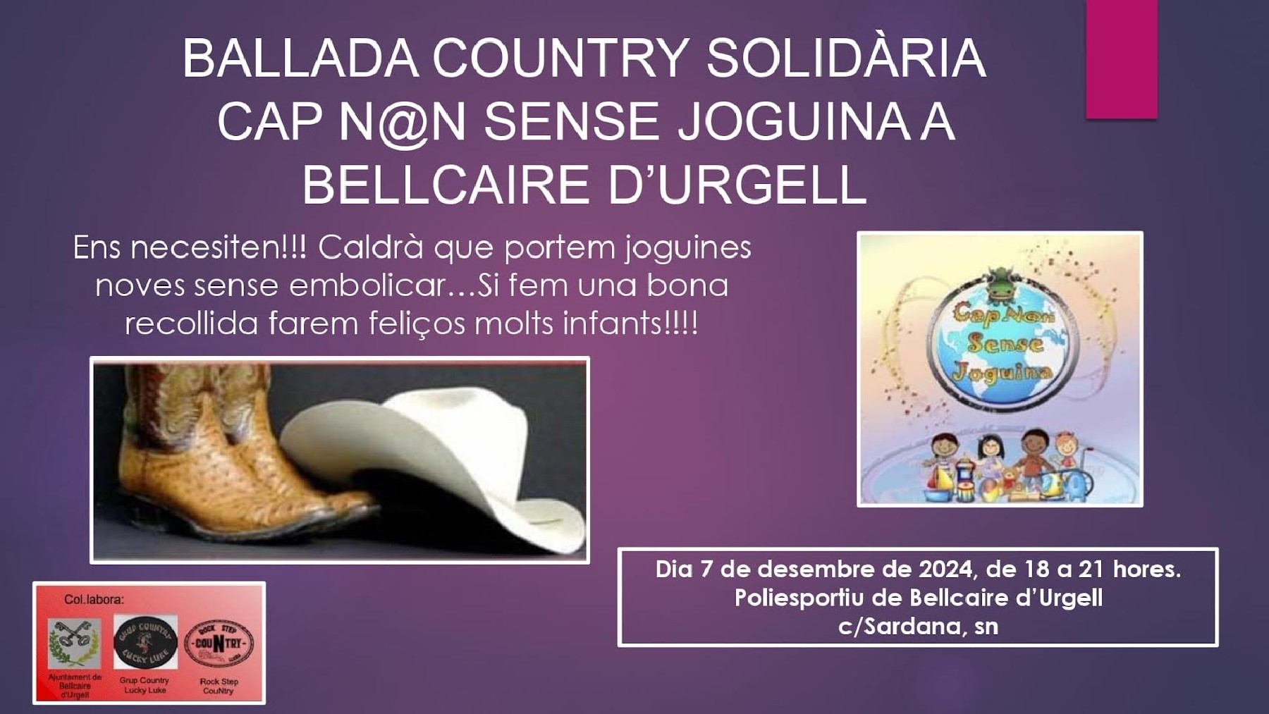 Ballada Country Solidària a Bellcaire d'Urgell. El dissabte 7 de setembre porta una joguina per als infants