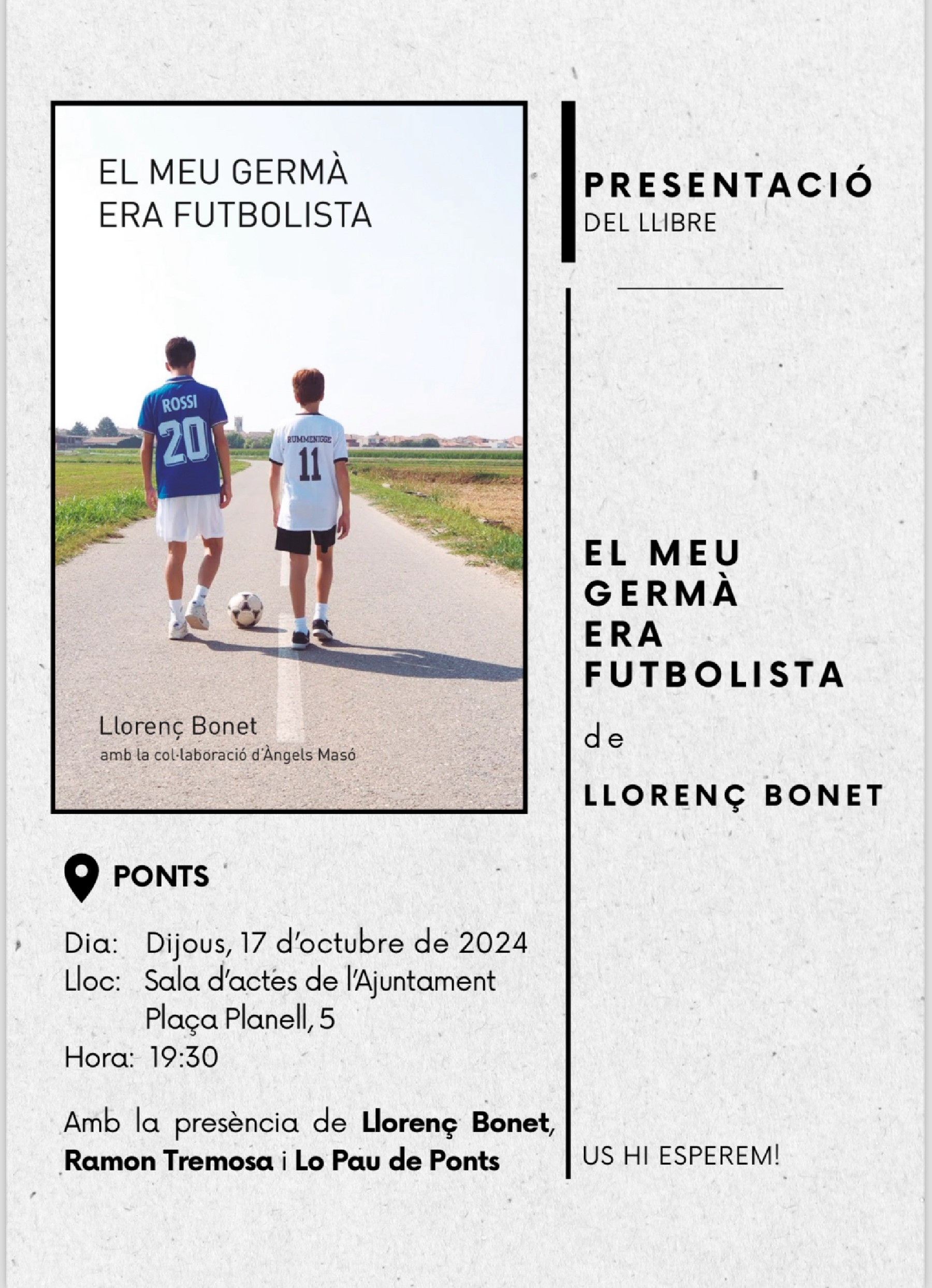 Aquest dijous es presentarà a Ponts el llibre 'El meu germà era futbolista' de Llorenç Bonet