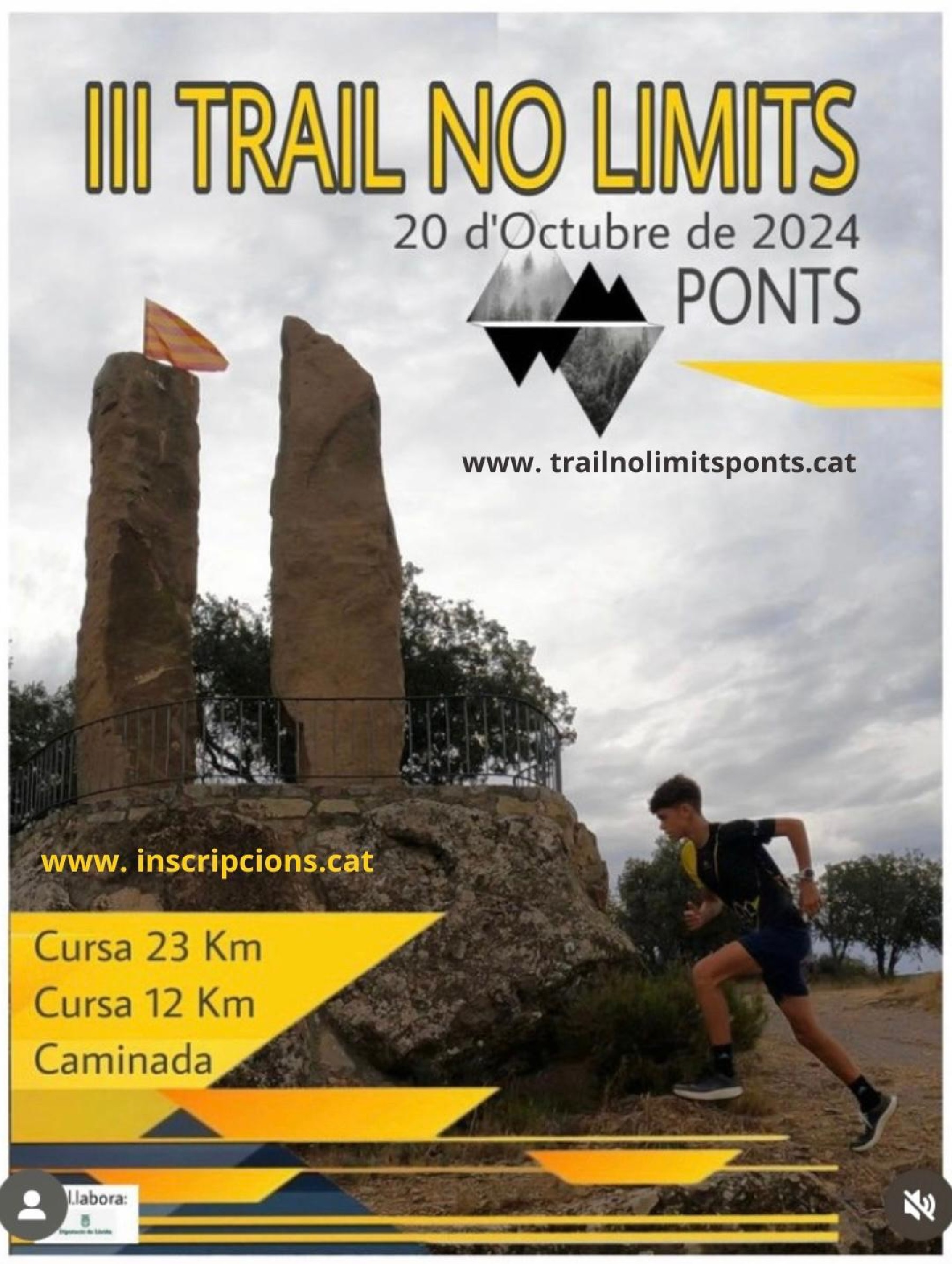 El diumenge 20 d'octubre se celebra la 3a TRAIL NO LIMITS, cursa organitzada pel C.E. Runners No Limits Ponts i puntuable a la Lliga de la Noguera de curses de muntanya