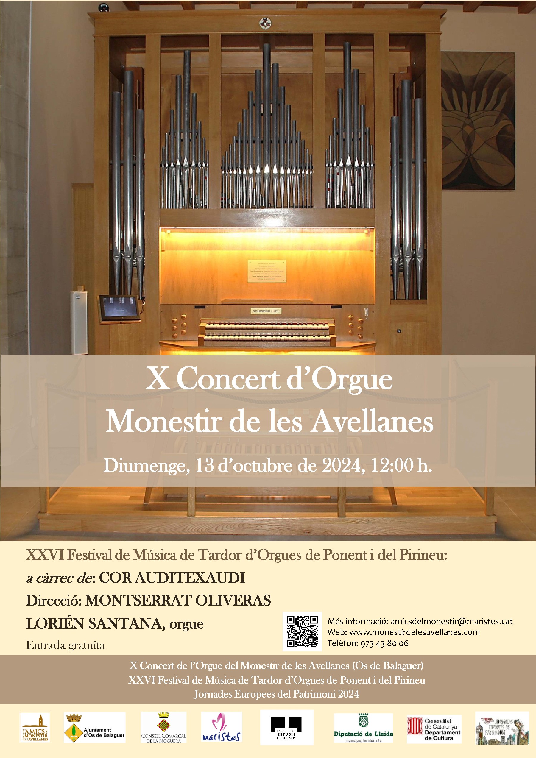 X Concert d'Orgue del Monestir de les Avellanes. Aquest diumenge 13 d'octubre amb el Cor Auditexaudi, dirigit per Montserrat Oliveras, amb l'acompanyament de Lorién Santana a l'orgue