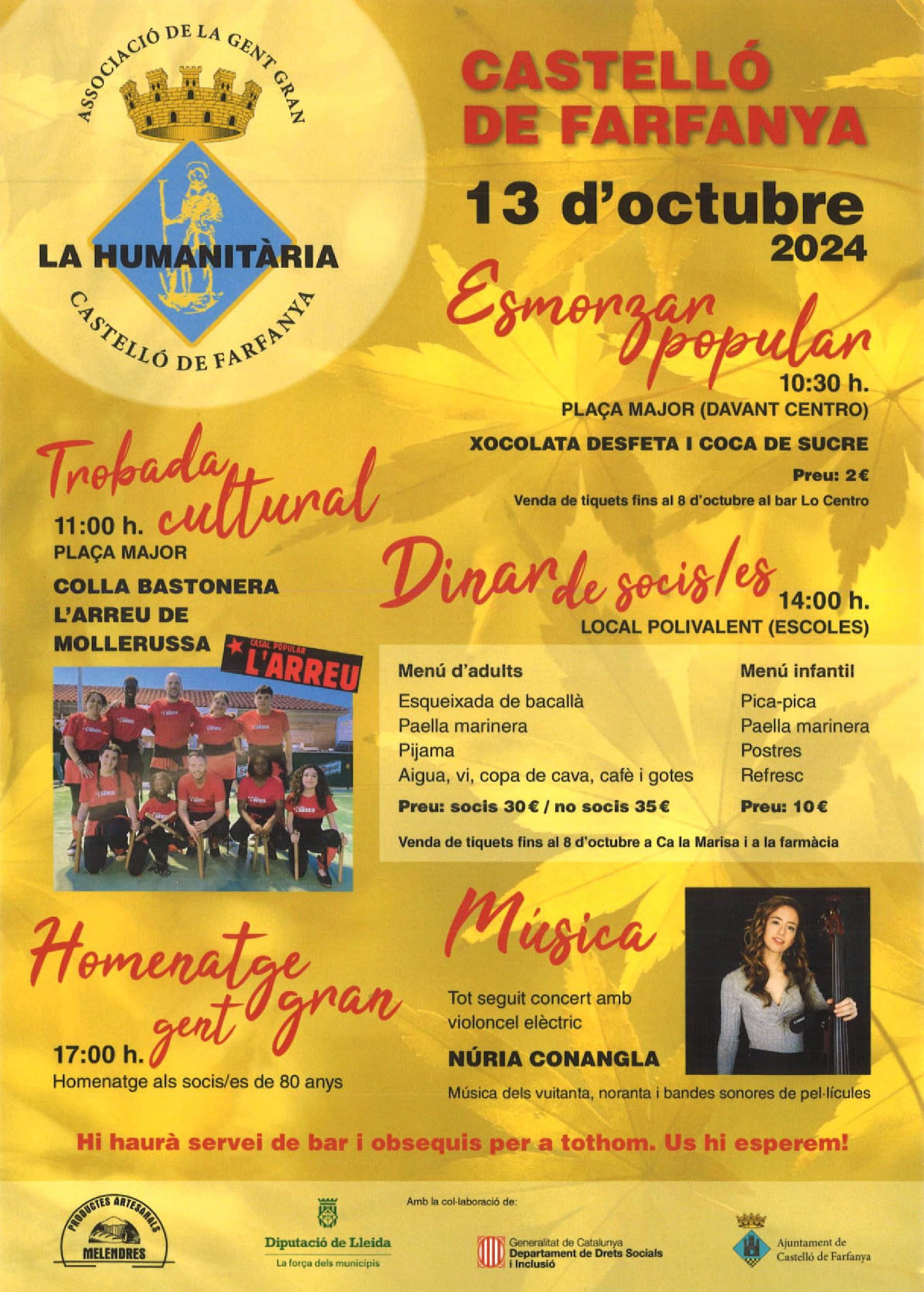 L'Associació La Humanitària de Castelló de Farfanya ha organitzat diversos actes el proper diumenge 13 d'octubre per homenatjar els veïns i veïnes del municipi que aquest any fan els 80 anys