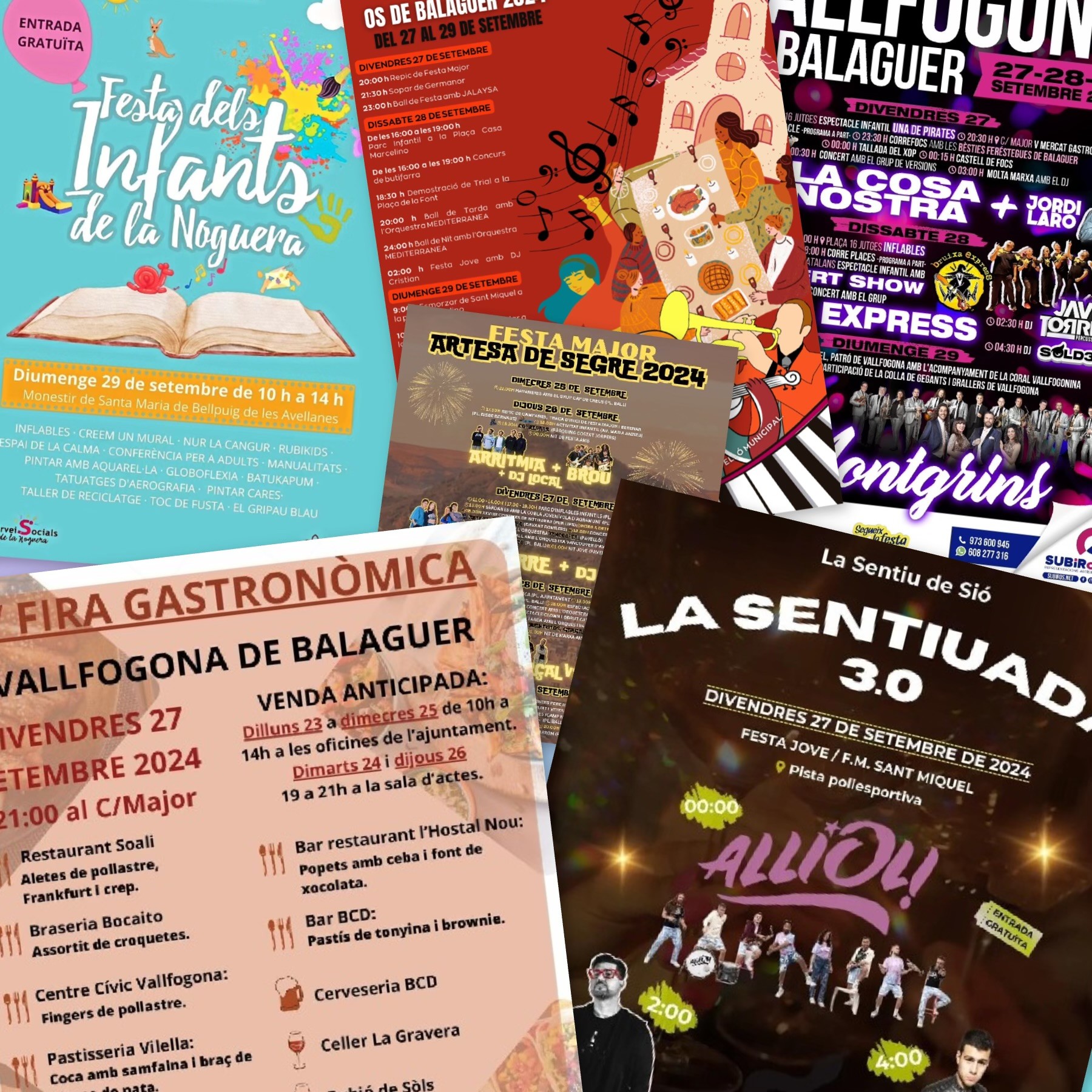 Aquest cap de setmana és festa major a Vallfogona, La Sentiu, Artesa de Segre i Os de Balaguer. També se celebra la Festa dels Infants. A més hi ha altres propostes culturals i festives