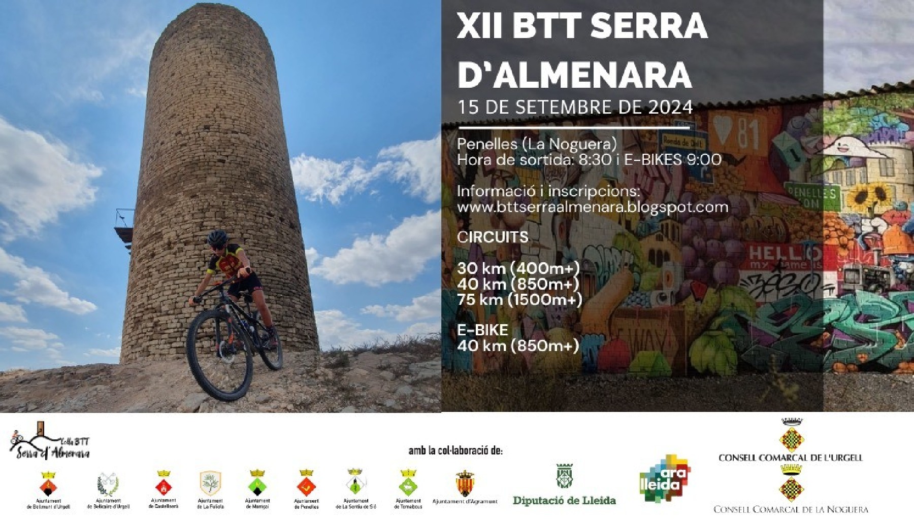 El proper 15 de setembre se celebrarà a Penelles la XII BTT Serra d'Almenara, organitzada pel Club Ciclista Serra d'Almenara amb la col·laboració de l'Ajuntament de Penelles