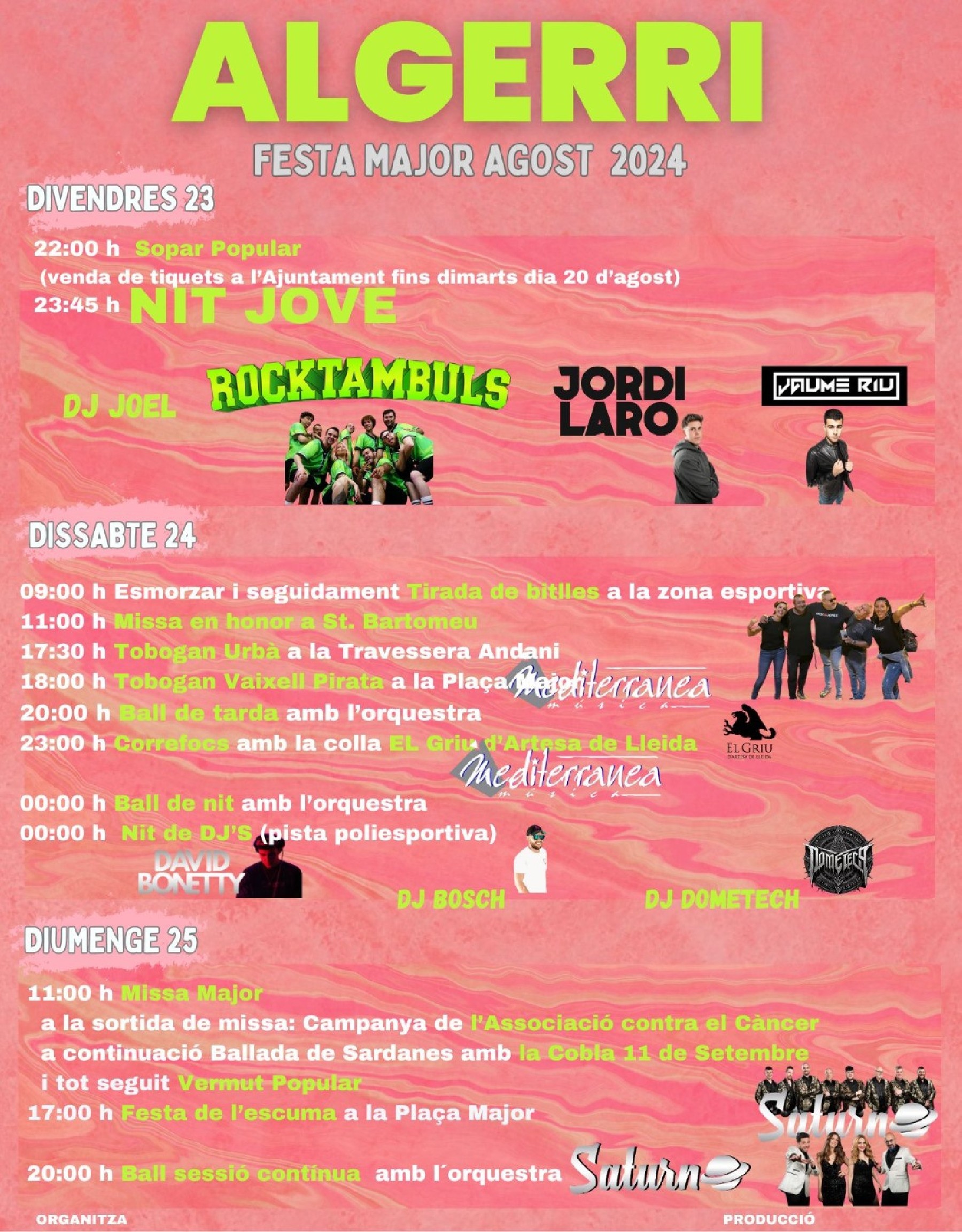Agulló celebra a partir de demà dijous i fins diumenge la seva Festa Major.