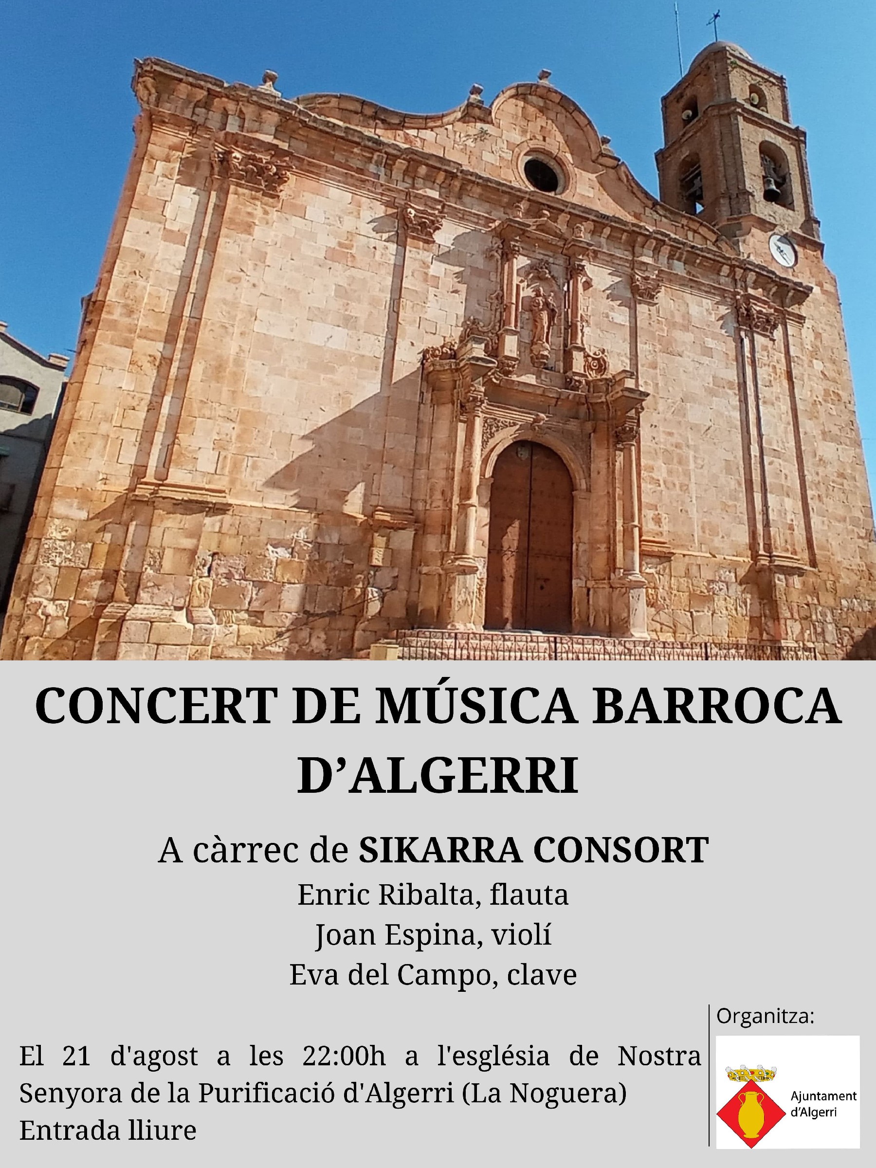 Algerri organitza aquest dimecres 21 d'agost a l'església d'Algerri un concert de música Barroca a càrrec de Sikarra Consort