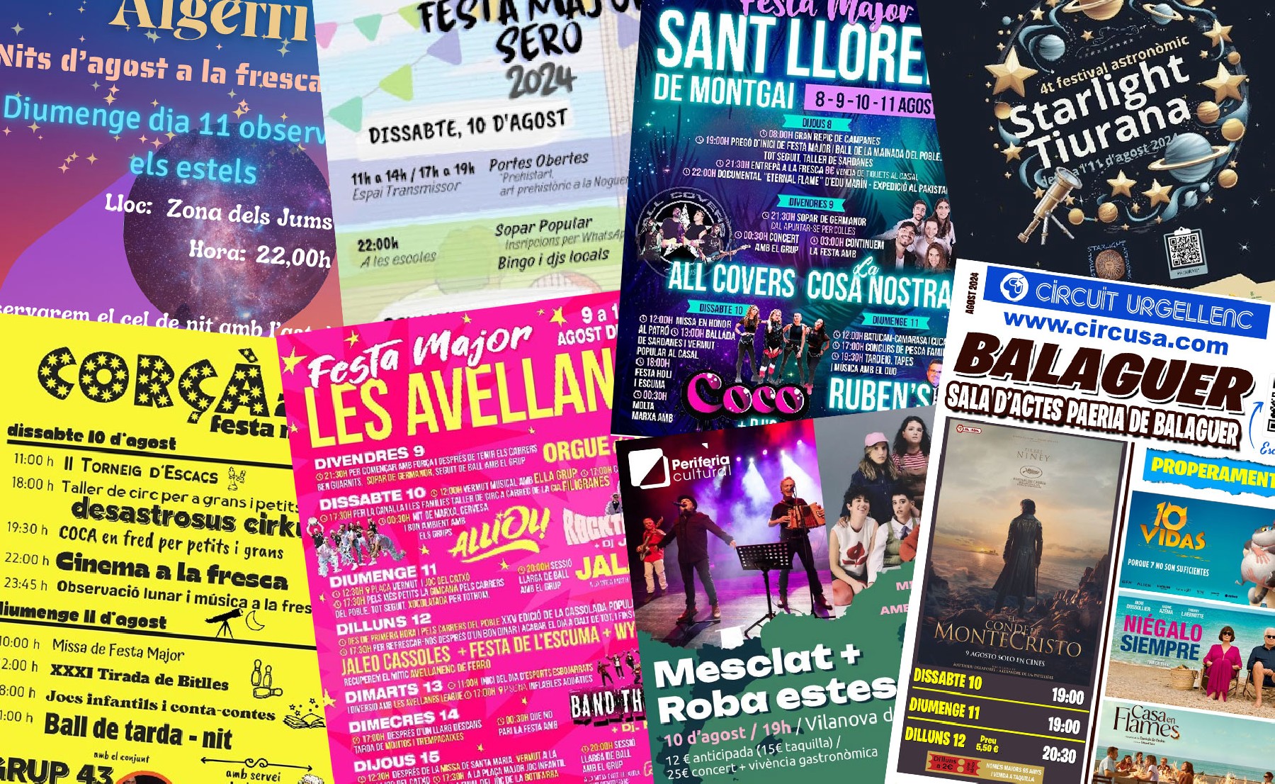 A Balaguer se celebra aquest diumenge la Festa de Santa Clara. A comarca és festa major a Sant Llorenç, Avellanes, Corçà, Seró i els Masos de Millà. També es fan activitats com el Perifèria Cultural o el Festival Astronòmic de Tiurana