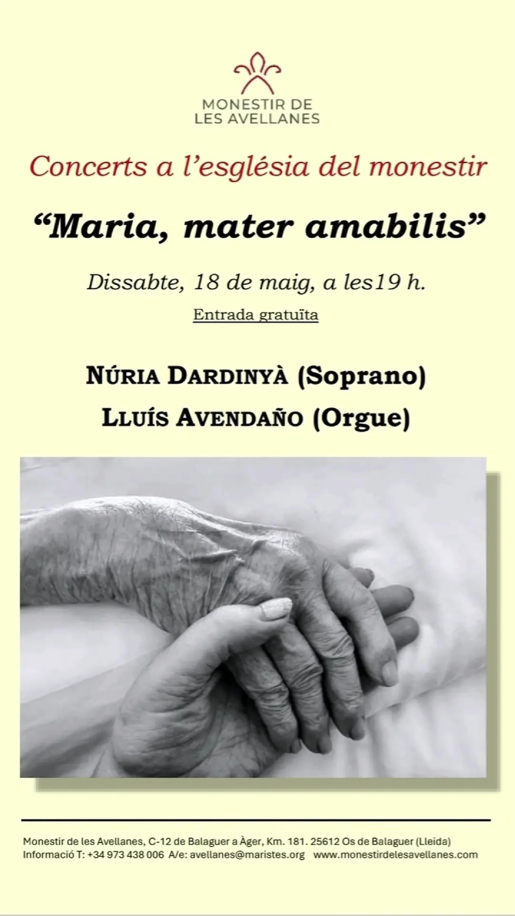 La soprano Núria Dardinya i l'organista Lluís Avendaño actuaran aquest dissabte al Monestir de les Avellanes