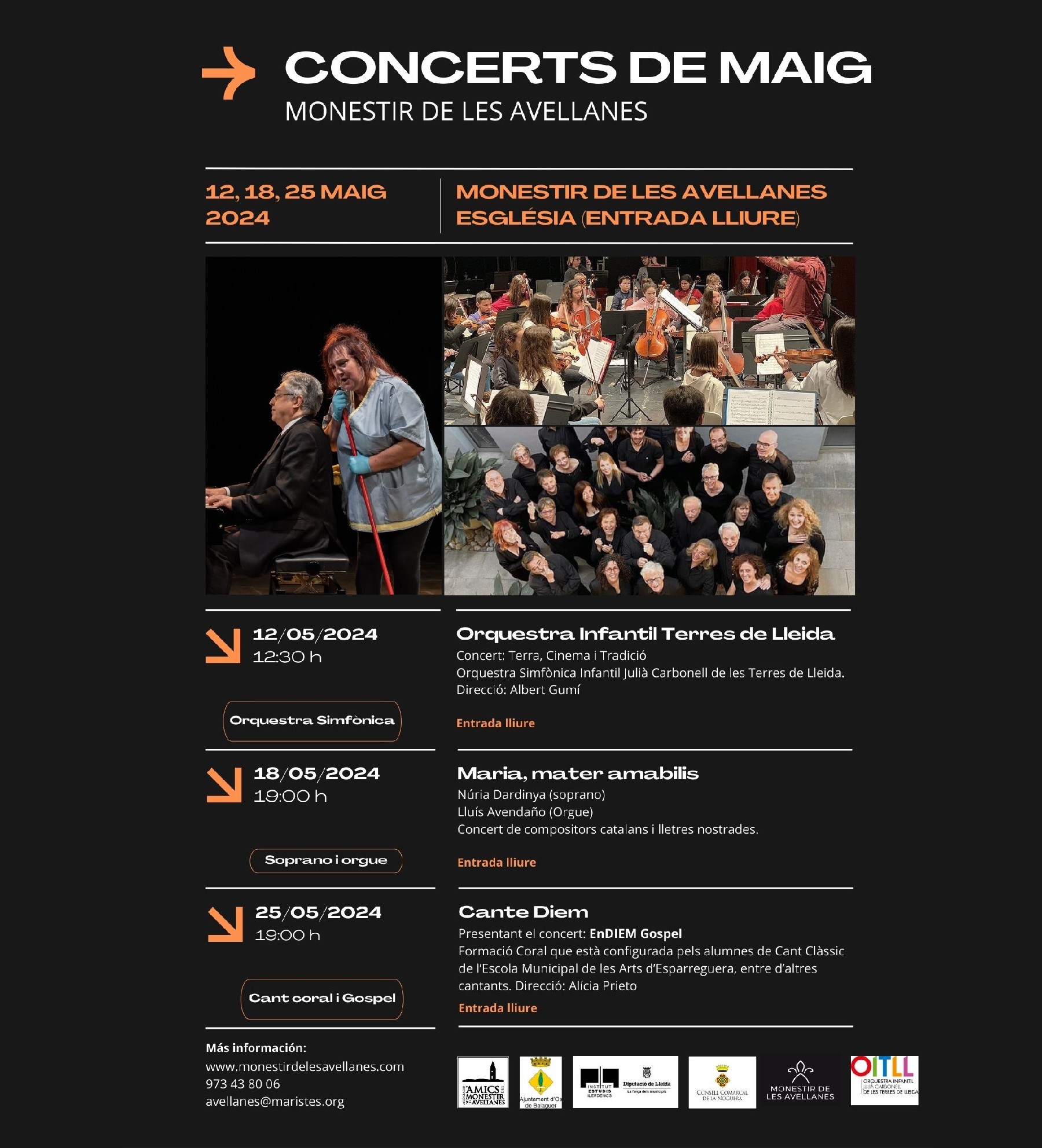 El Monestir de les Avellanes ofereix els caps de setmana del mes de maig un cicle de concerts. Són gratuïts i el repertori inclou un conjunt orquestral simfònic, lírica i cant coral i gòspel