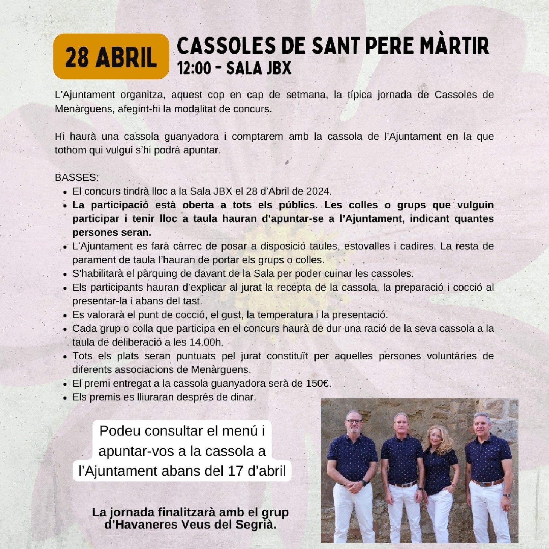 Menàrguens celebra aquest cap de setmana una de les seves festes locals. Es tracta de Sant Pere Màrtir, que té el seu màxim exponent el dissabte amb les tradicionals cassoles