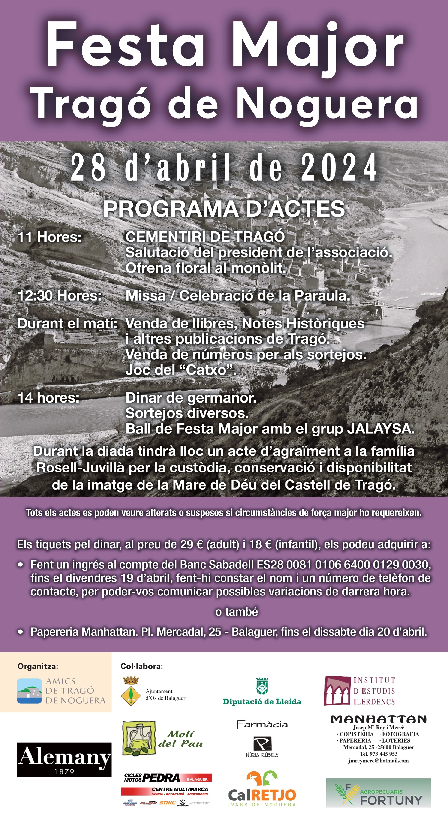 Tragó de Noguera celebra el diumenge 28 d'abril la seva Festa Major