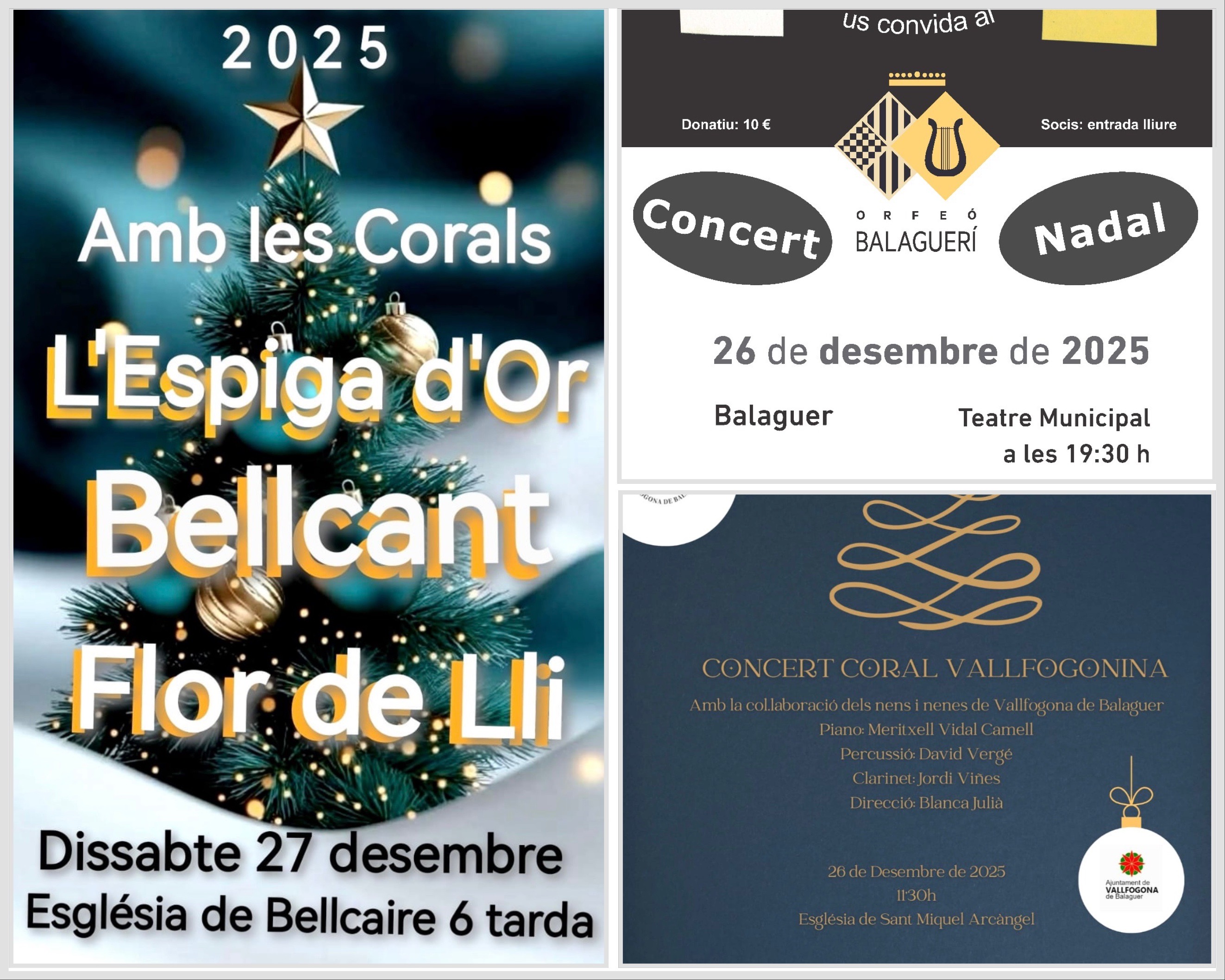 Aquest divendres i dissabte la comarca de la Noguera acull diversos concerts corals amb temàtica nadalenca. Balaguer, Vallfogona, ponts, Bellcaire, Montgai i Os de Balaguer són els municipis on escoltar nadales