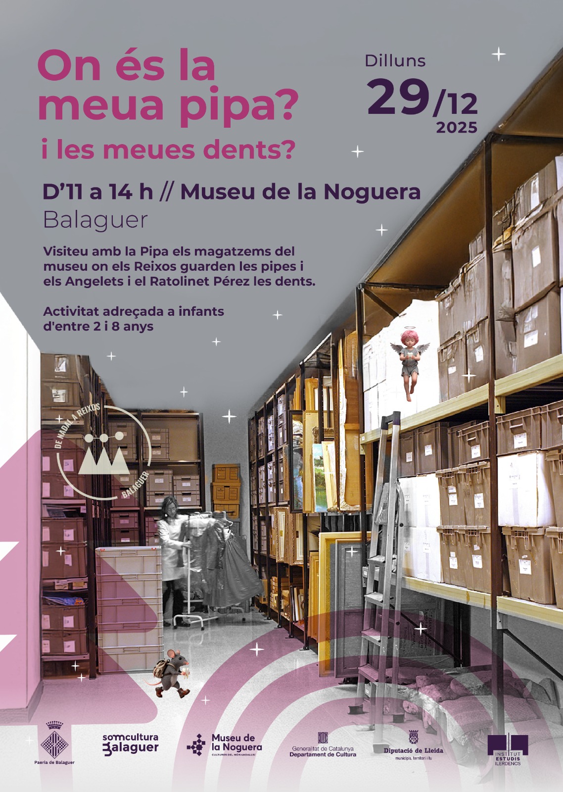 El Museu de la Noguera ha organitzat un Nadal més l’activitat “On és la meua pipa? I les meues dents?”, en la qual obre les portes del seu magatzem als infants de la ciutat. L’activitat s’ha fet aquest dilluns al matí i estava adreçada a infants de 2 a 8 anys