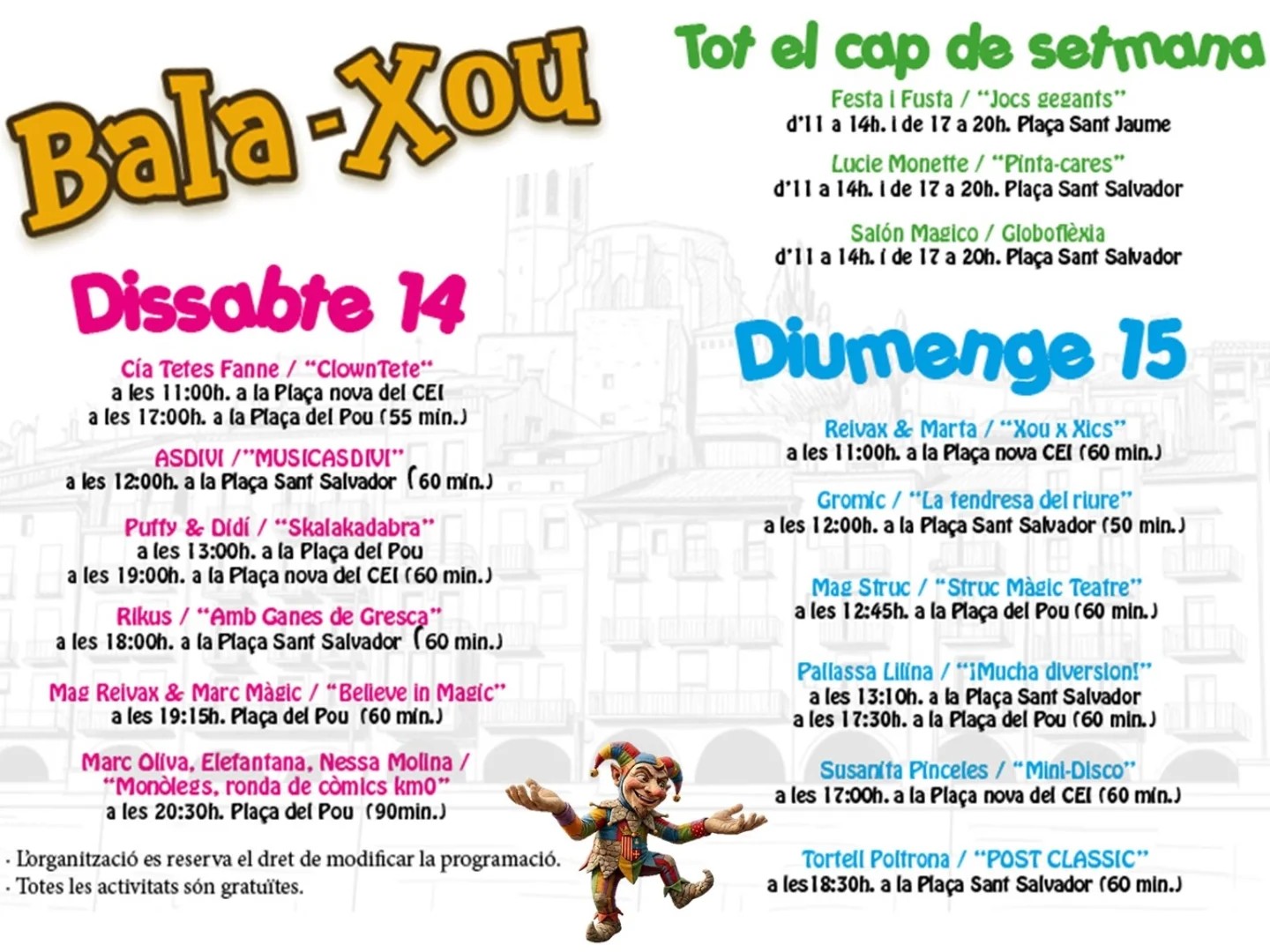 Balaguer es prepara per acollir aquest cap de setmana la primera edició del festival Bala-xou, una proposta cultural i familiar que omplirà carrers i places d’espectacles d’humor, circ, màgia i animació
