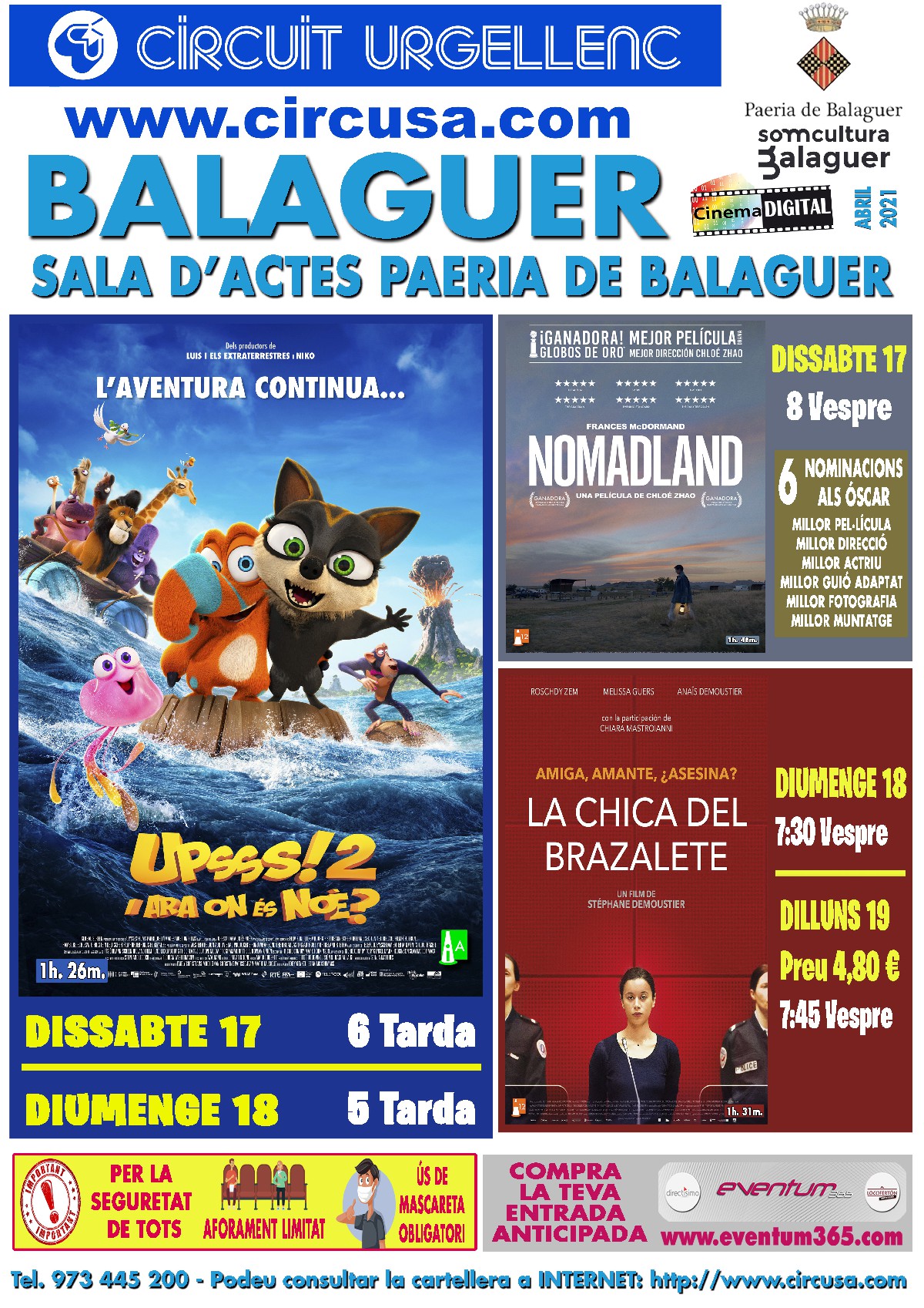 Aquest cap de setmana al Cinema Balaguer, cinema d'animació amb UPSSS! I ARA ON ÉS NOÈ? i els films, NOMADLAND i LA CHICA DEL BRAZALETE