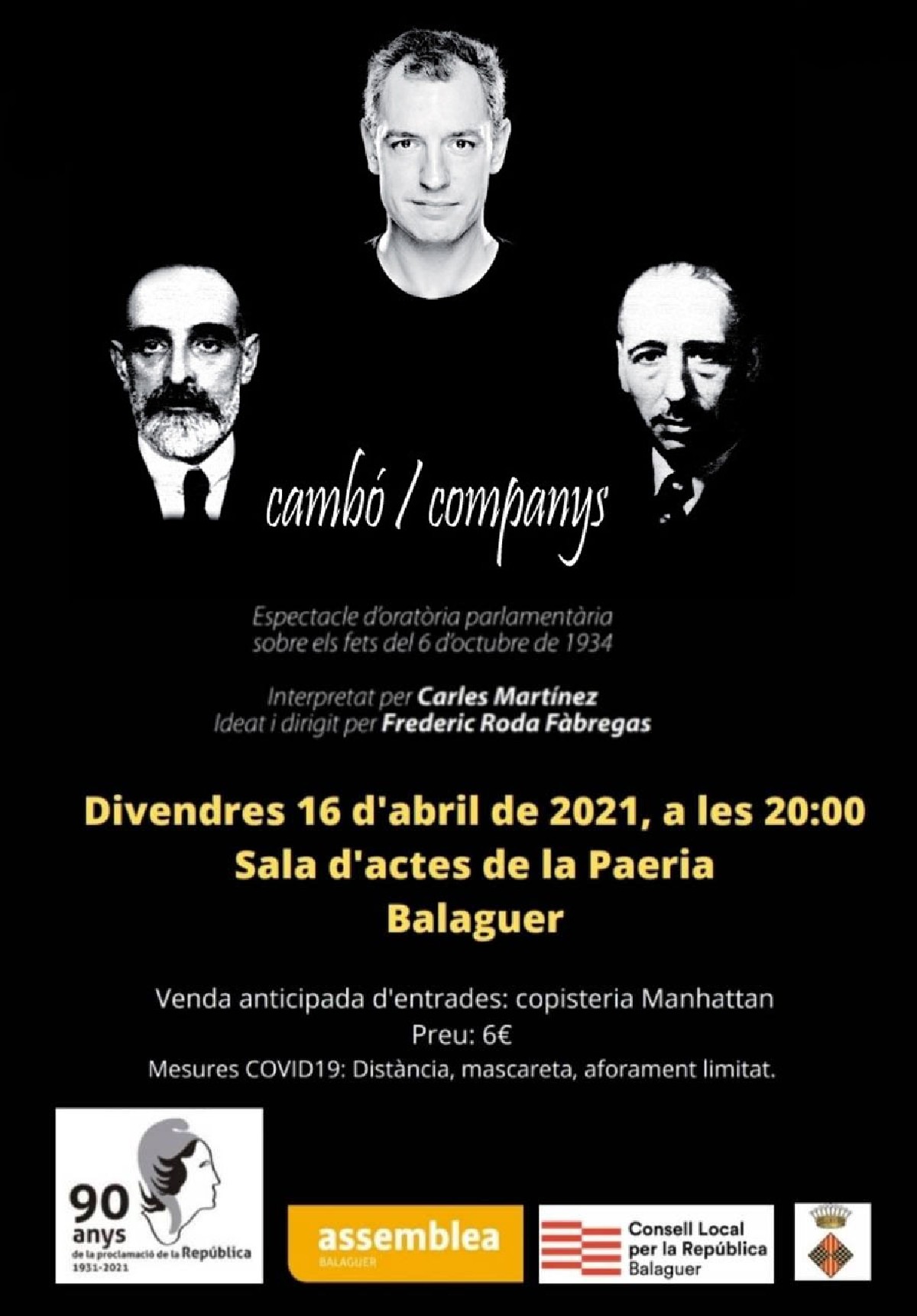 El Consell per la República de Balaguer prepara diverses activitats al voltant de Sant Jordi. La primera, la representació de l'obra 'Companys/ Cambó', es farà el divendres 16 d'abril a les 8 del vespre a la sala d'actes de la casa de la Paeria