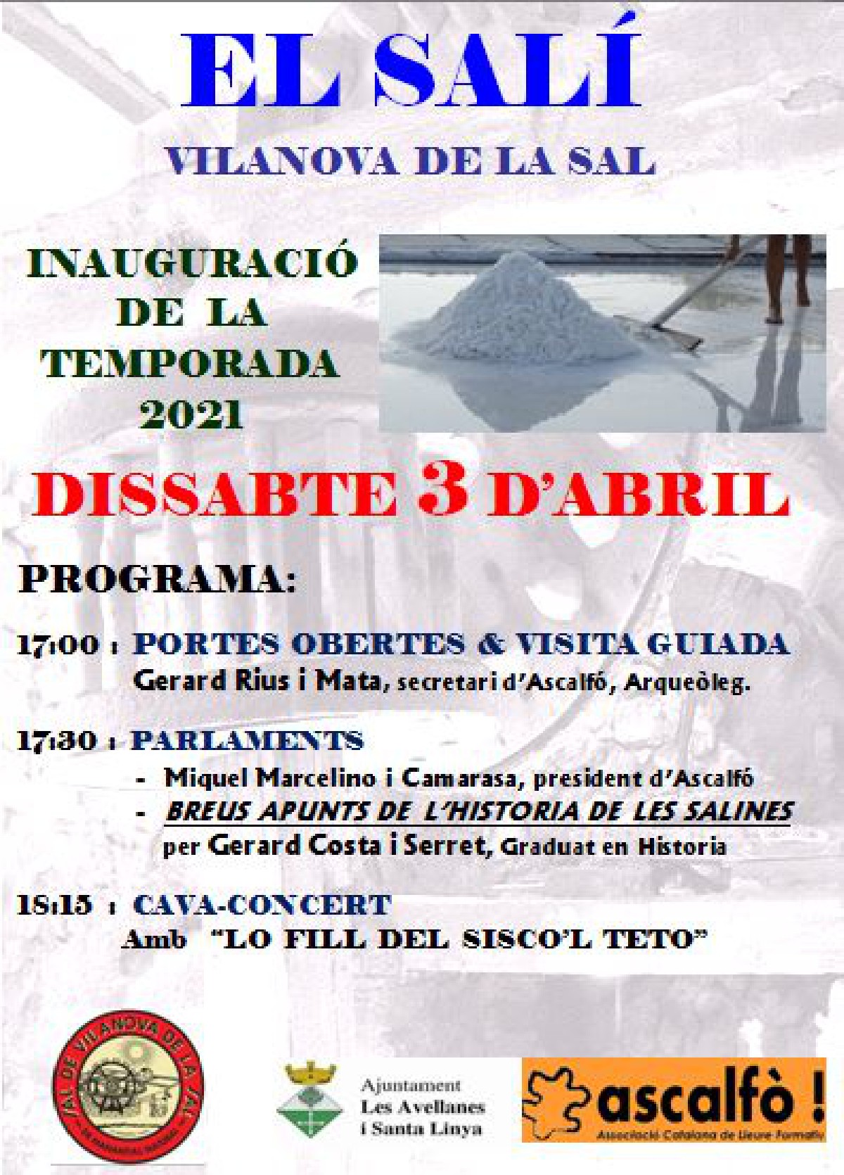 El Salí de Vilanova de la Sal ha programat la inauguració de la temporada per al dissabte 3 d'abril. Ho farà amb una tarda de portes obertes, amb visita guiada i el concert de Lo fill del Sisco'l Teto