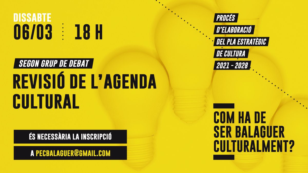 Aquest proper dissabte tindrà lloc la segona de les sessions de debat del Pla Estratègic de Cultura. En la sessió es revisarà l'agenda cultural i per participar-hi cal inscripció prèvia