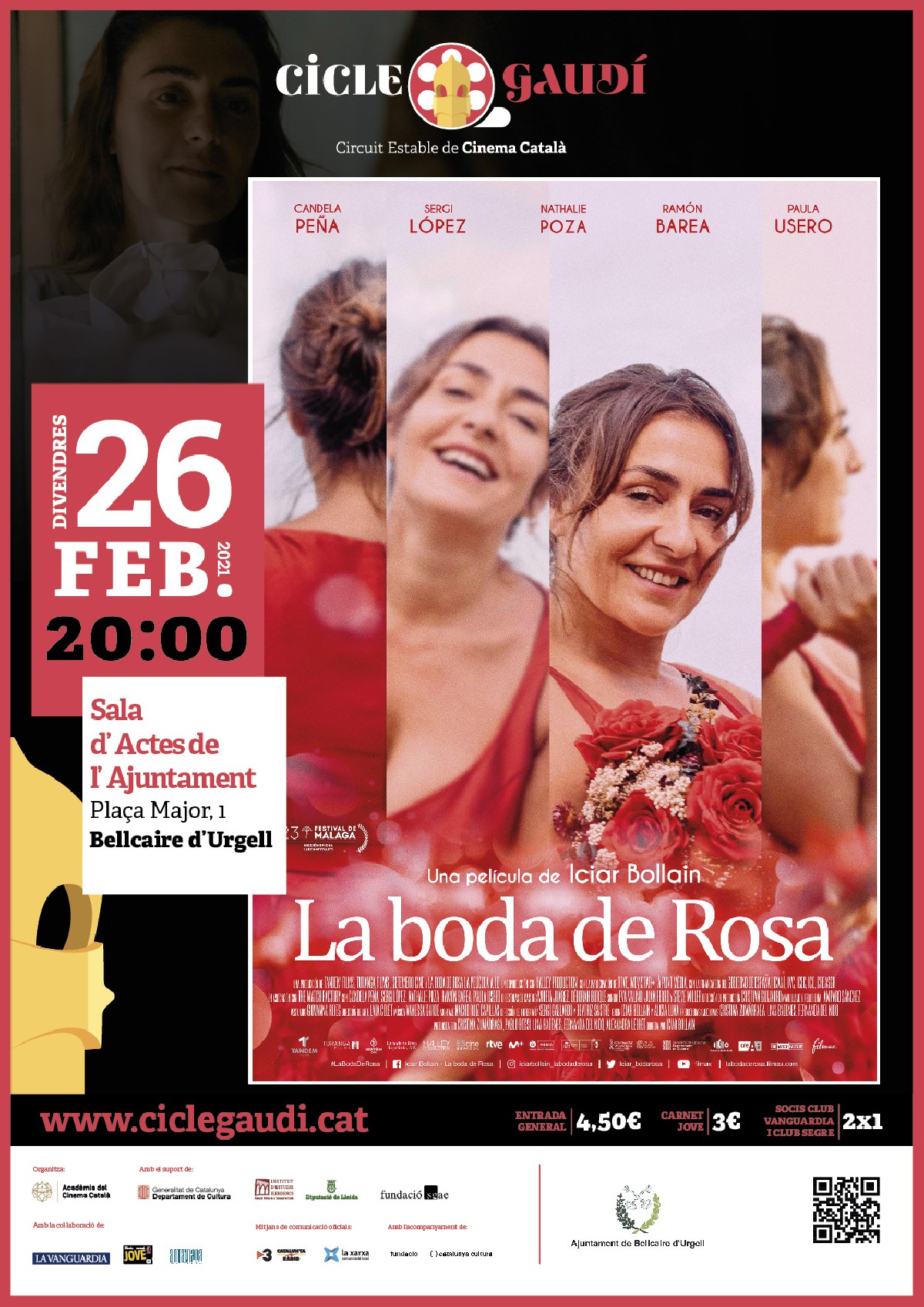 Aquest cap de setmana torna el Cicle Gaudí de cinema català la comarca. Es podrà veure la pel·lícula 'La boda de rosa', de Iciar Bollain. El divendres es projectarà a Bellcaire d'Urgell i el diumenge a Ponts