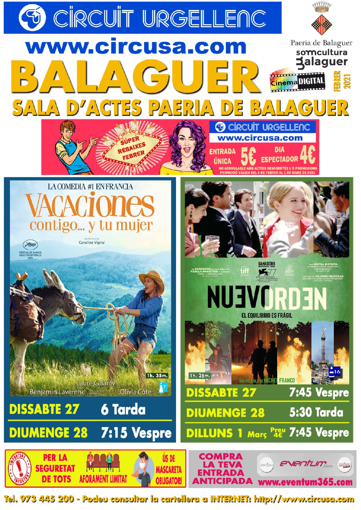 Aquest cap de setmana al cinema Balaguer es podran veure les pel·lícules; ''VACACIONES, CONTINGO... Y TU MUJER'' i ''NUEVO ORDEN, EL EQUILIBRIO ES FRÁGIL''