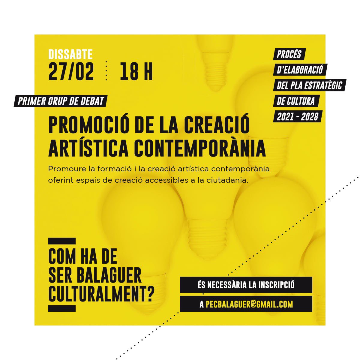 La Paeria de Balaguer inicia aquest dissabte el cicle de debats per conèixer com la ciutadania creu que ha de ser la ciutat culturalment els propers anys. El tema del primer debat és la promoció de la creació artística contemporània