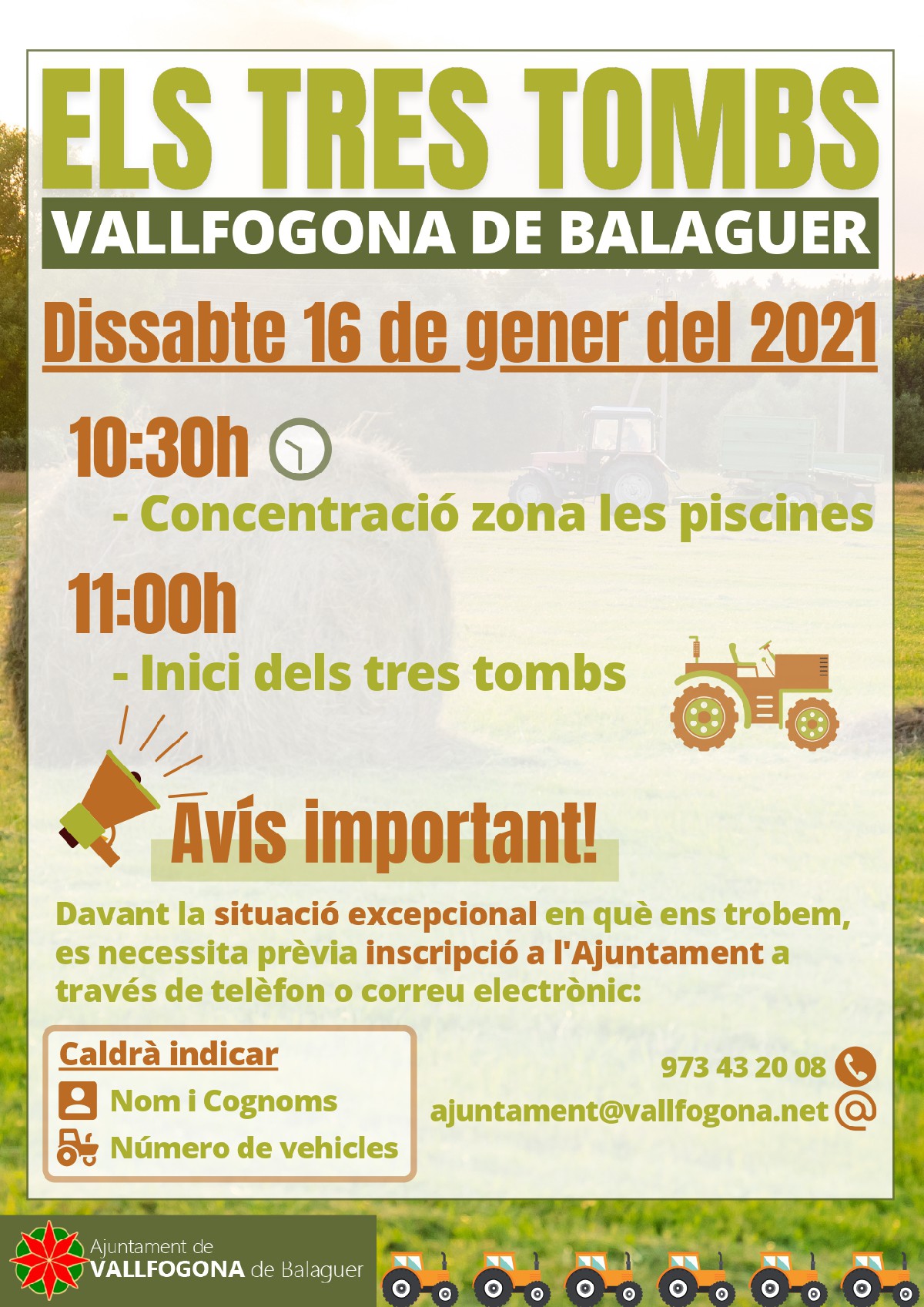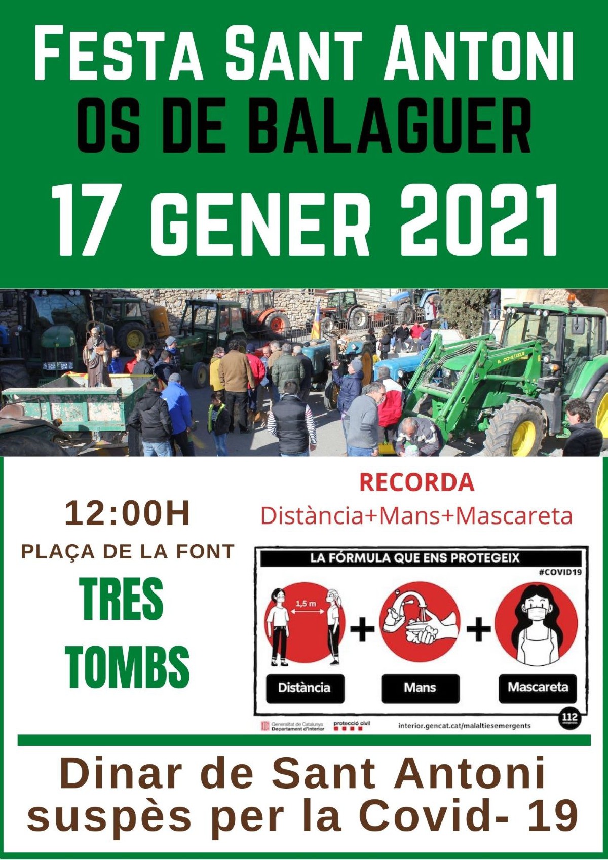 Vallfogona de Balaguer celebrarà aquest dissabte 16 de gener la tradicional festivitat de Sant Antoni, que aquest any només comptarà amb els tres tombs, a causa de les restriccions de la Covid