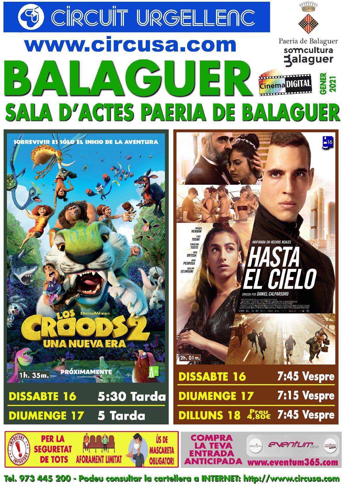 Aquest cap de setmana es pot tornar a veure al Cinema Balaguer la pel·lícula d'animació ELS CROODS 2 una nova era. I també l'estrena de HASTA EL CIELO